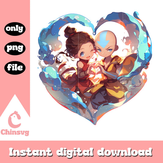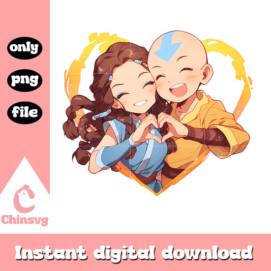 Aang and Toph chibi heart png, Aang and toph beifong png