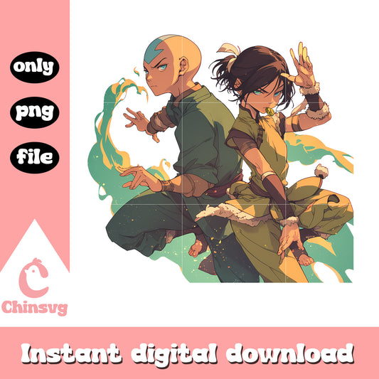 Aang and Toph chibi cute png, Aang and toph beifong png