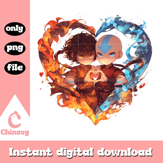 Aang and Zuko chibi heart png, Aang and Zuko chibi png, zuko png
