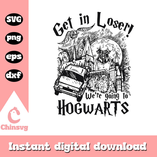 Get in loser we're going to hogwarts svg, harry potter font svg