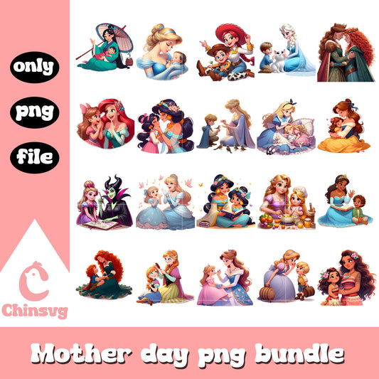Disney princess mom characters bundle png, disney princess png, mother day png