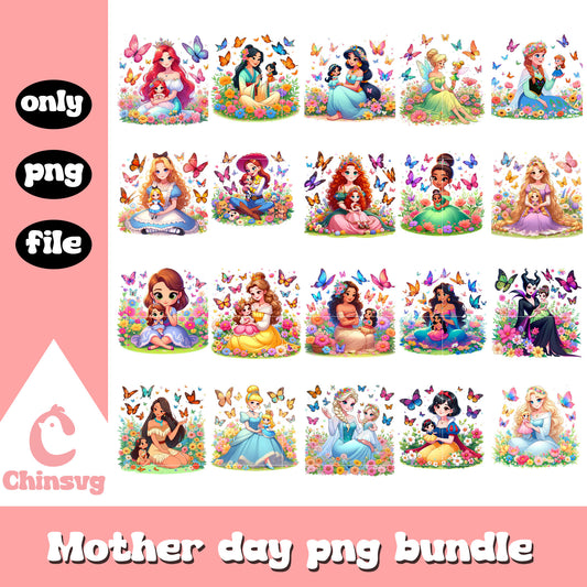 Disney princess and her children bundle png, disney princess png, mother day png