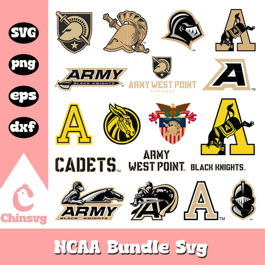 Army Black Kinghts logo bundle design svg, ncaa football logo svg