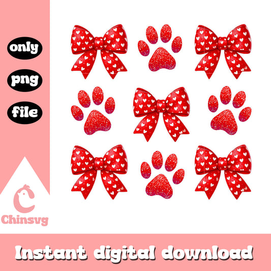 Cute coquette bow dog paws, foot print png, valentines day png