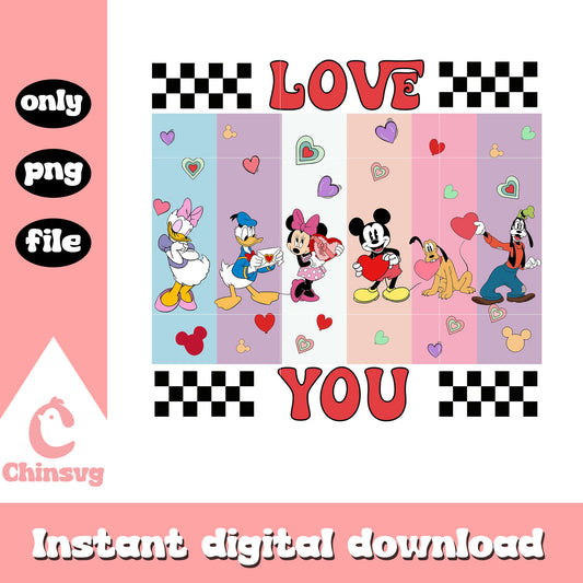Disney love you png, mickey friends png, happy valentine day png