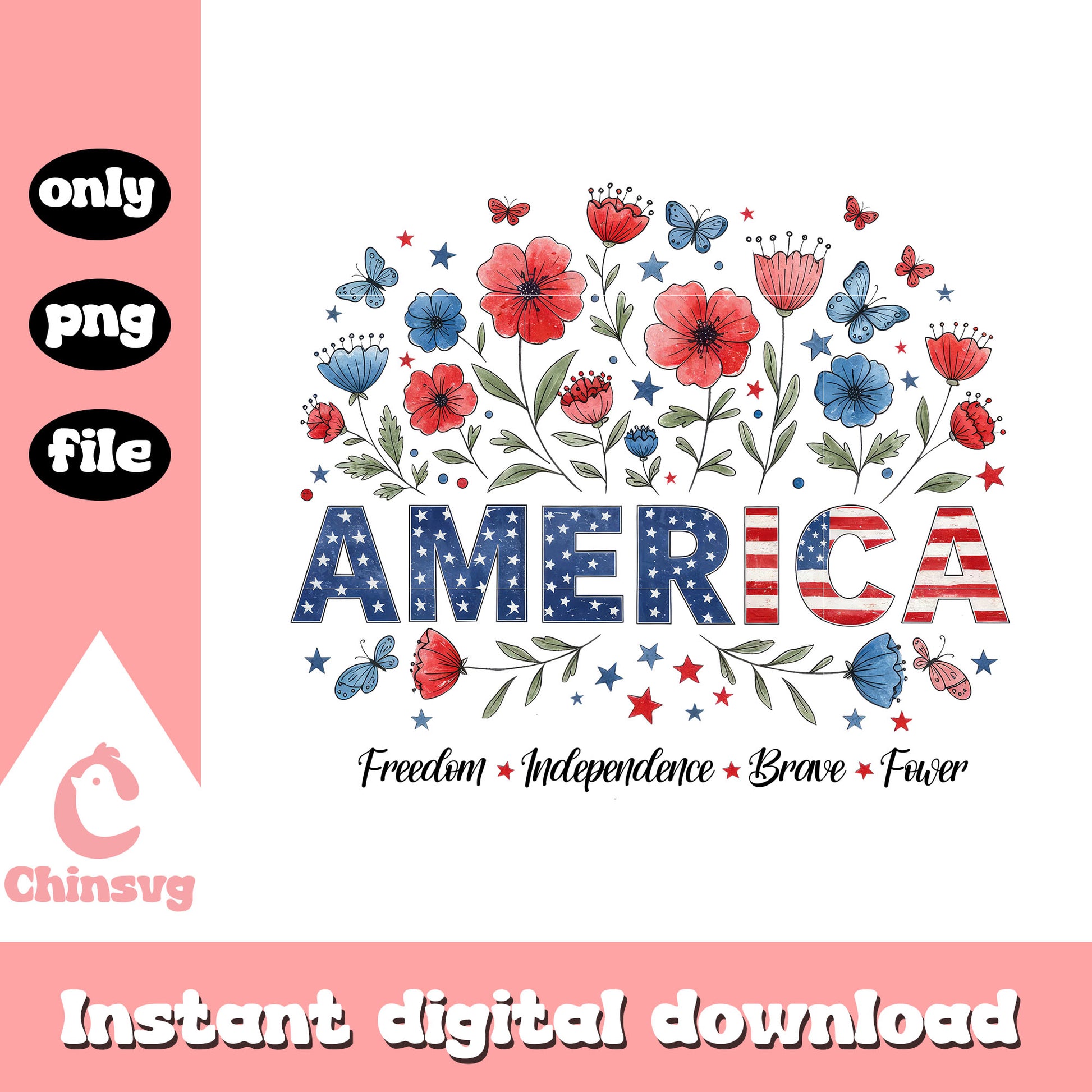 4th of july america flowers design png is a product of our 4th of July collection. Get ready to celebrate America’s Independence Day in style with our 4th of July SVG Collection! Packed with bold red, white, and blue designs, this collection features patriotic graphics, fun quotes, fireworks, flags, and more. Perfect for DIY apparel, party decorations, and personalized gifts that light up the holiday spirit!
