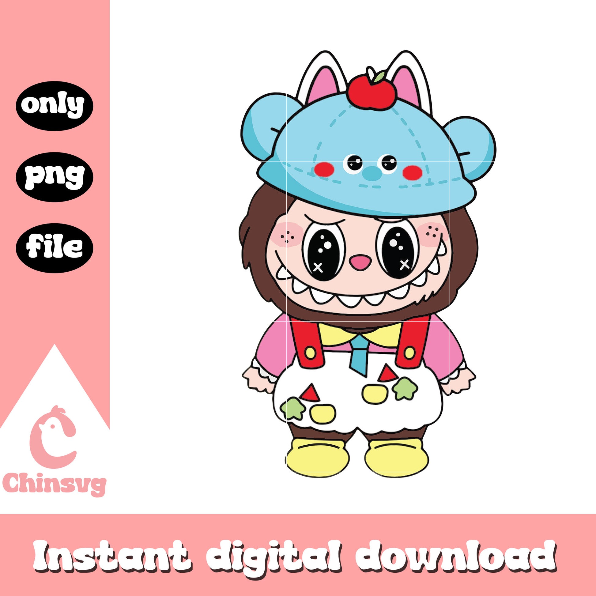 Apple hat labubu cute doll design png is a product of our Labubu collection. Dive into the magical world of Labubu with our whimsical Labubu SVG Collection! Inspired by the beloved mischievous character from the POP MART universe, this collection is filled with playful poses, expressive faces, and cute yet edgy vibes. Perfect for fans, collectors, and crafters looking to add a touch of artistic charm and character to their projects.