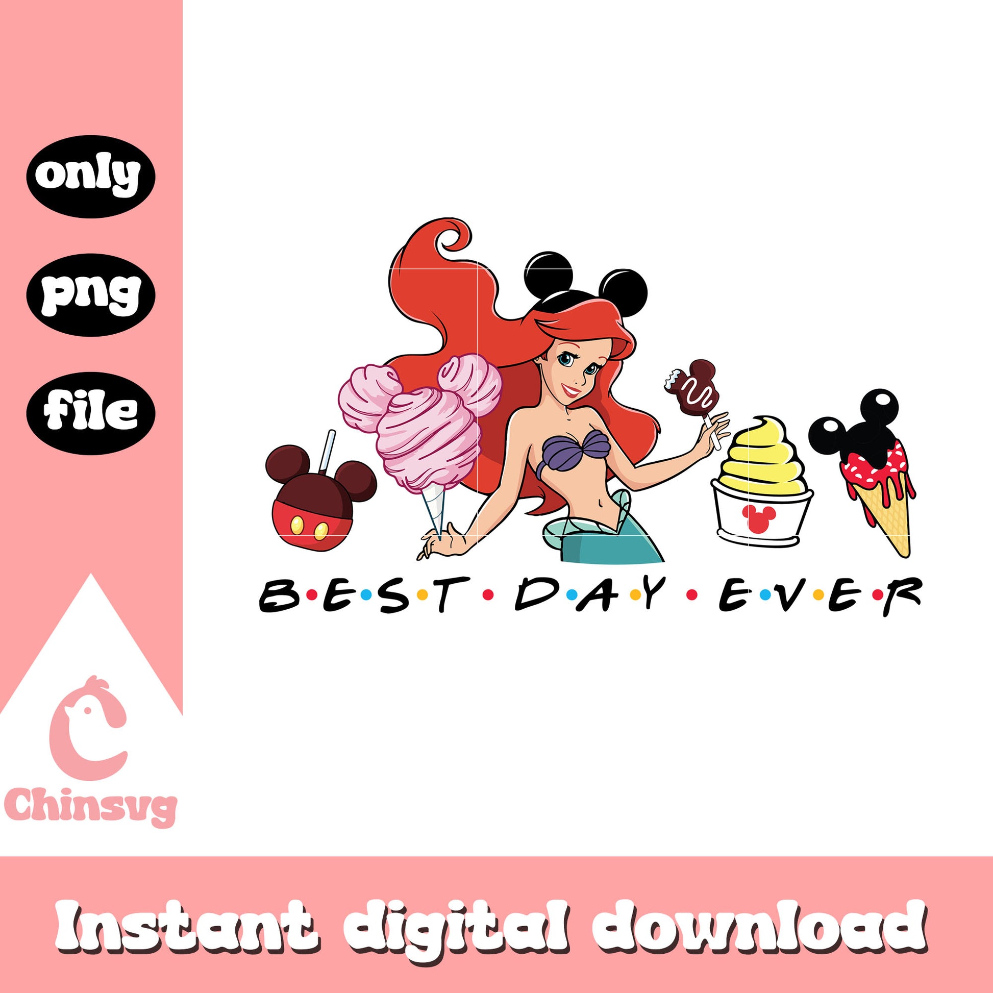 Ariel best day ever png is a product of our Disney princess svg collection. Featuring the beloved princesses and their iconic elements. Perfect for fans of all ages, this collection includes stunning illustrations of princesses, royal castles, magical objects, and timeless quotes that will bring charm and elegance to your creative projects. Whether you’re crafting for birthdays, decorations, or personalized gifts, these high-quality designs are fit for royalty!