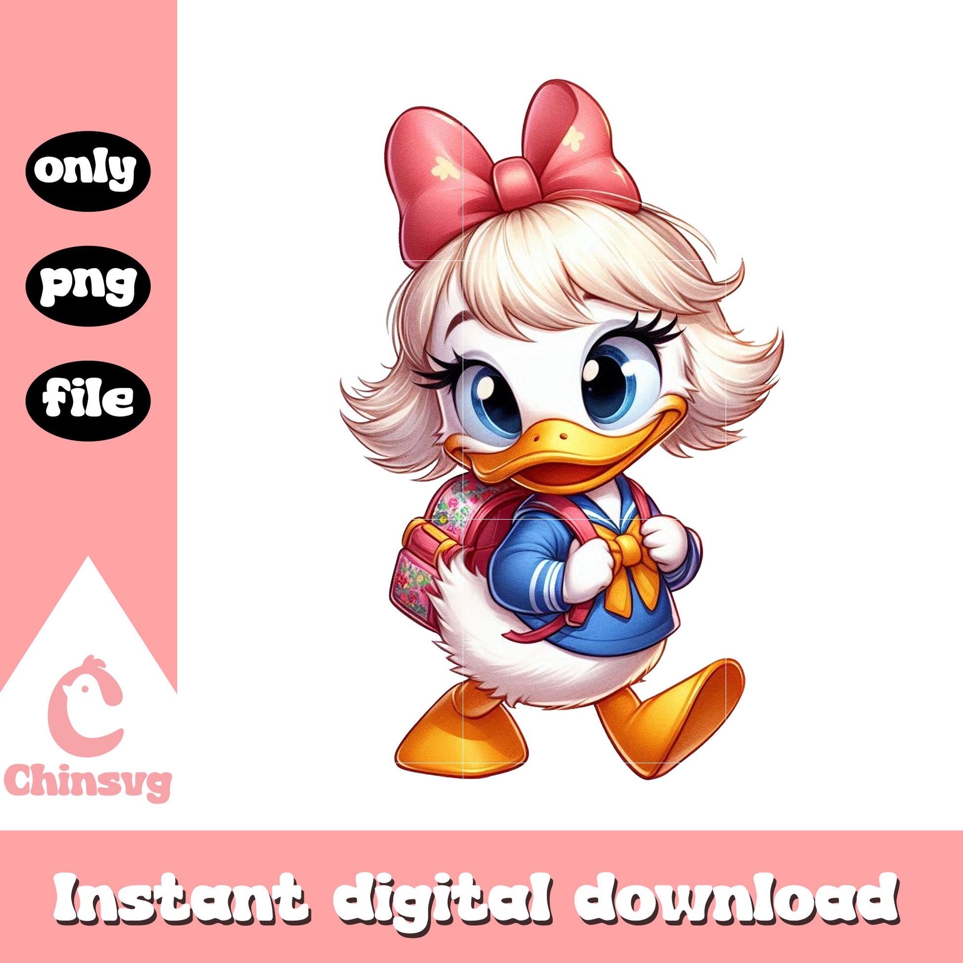 Baby daisy duck go to school png is a product of our School collection. Celebrate the spirit of learning with our School SVG Collection! Perfect for teachers, students, and parents, this collection features education-themed designs, from playful quotes and school supplies to classroom graphics and seasonal school moments. Whether you're personalizing a teacher gift or decorating for back-to-school, these high-quality files bring creativity to every classroom and craft project!