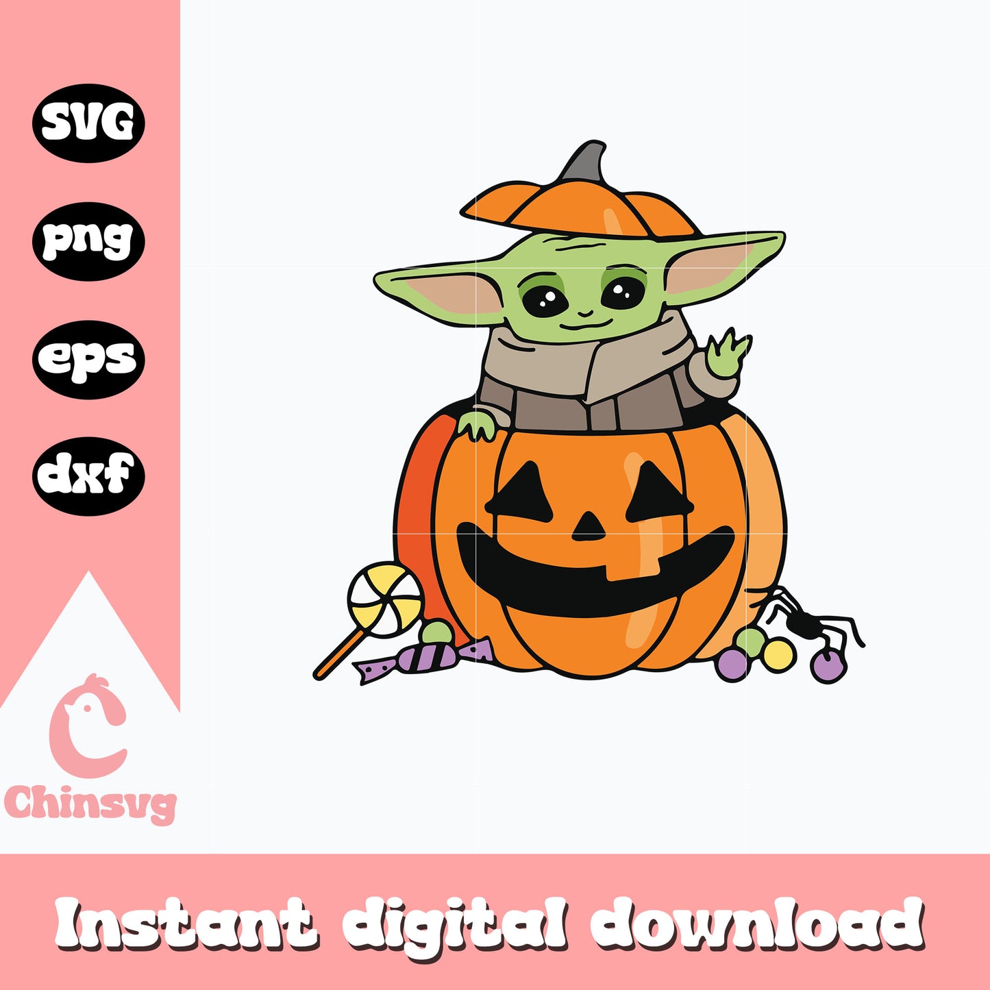 Baby Yoda Pumpkin Design Svg, halloween Svg, Digital Download