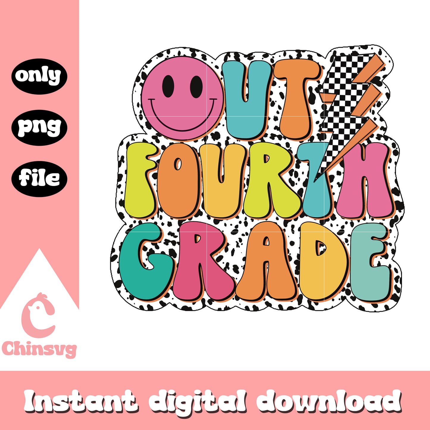 Back to school out fourth grade font design png is a product of our School collection. Celebrate the spirit of learning with our School SVG Collection! Perfect for teachers, students, and parents, this collection features education-themed designs, from playful quotes and school supplies to classroom graphics and seasonal school moments. Whether you're personalizing a teacher gift or decorating for back-to-school, these high-quality files bring creativity to every classroom and craft project!