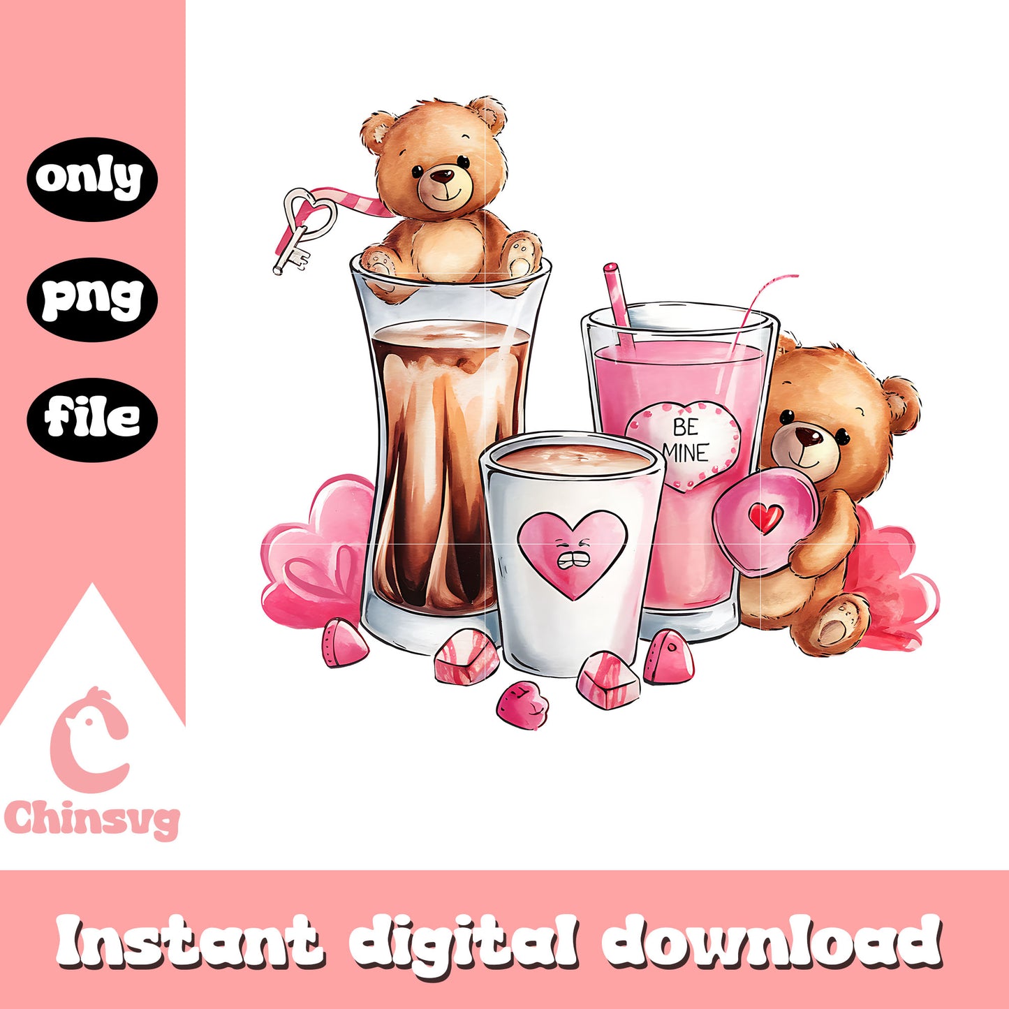 Bear and coffee be mine valentine png, be mine png, valentine png