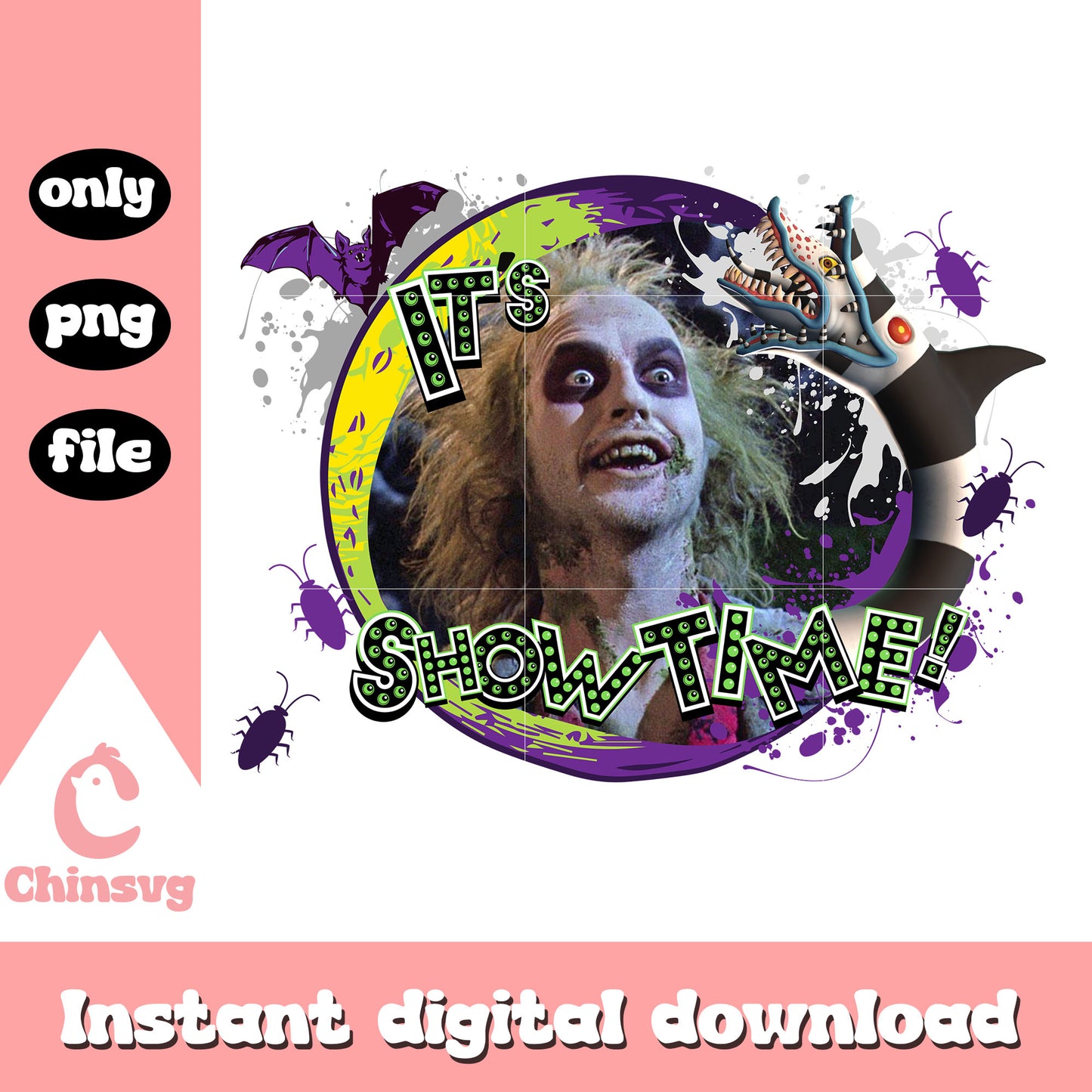 Beetlejuice it's showtime png is a product of our Halloween collection. Whether you're crafting spooky decorations, designing party invitations, or creating unique apparel, this collection is packed with high-quality, detailed graphics that perfectly capture the spirit of Halloween. From pumpkins, ghosts, bats, to witches, skeletons, and more, this set offers endless possibilities for your creative ideas.