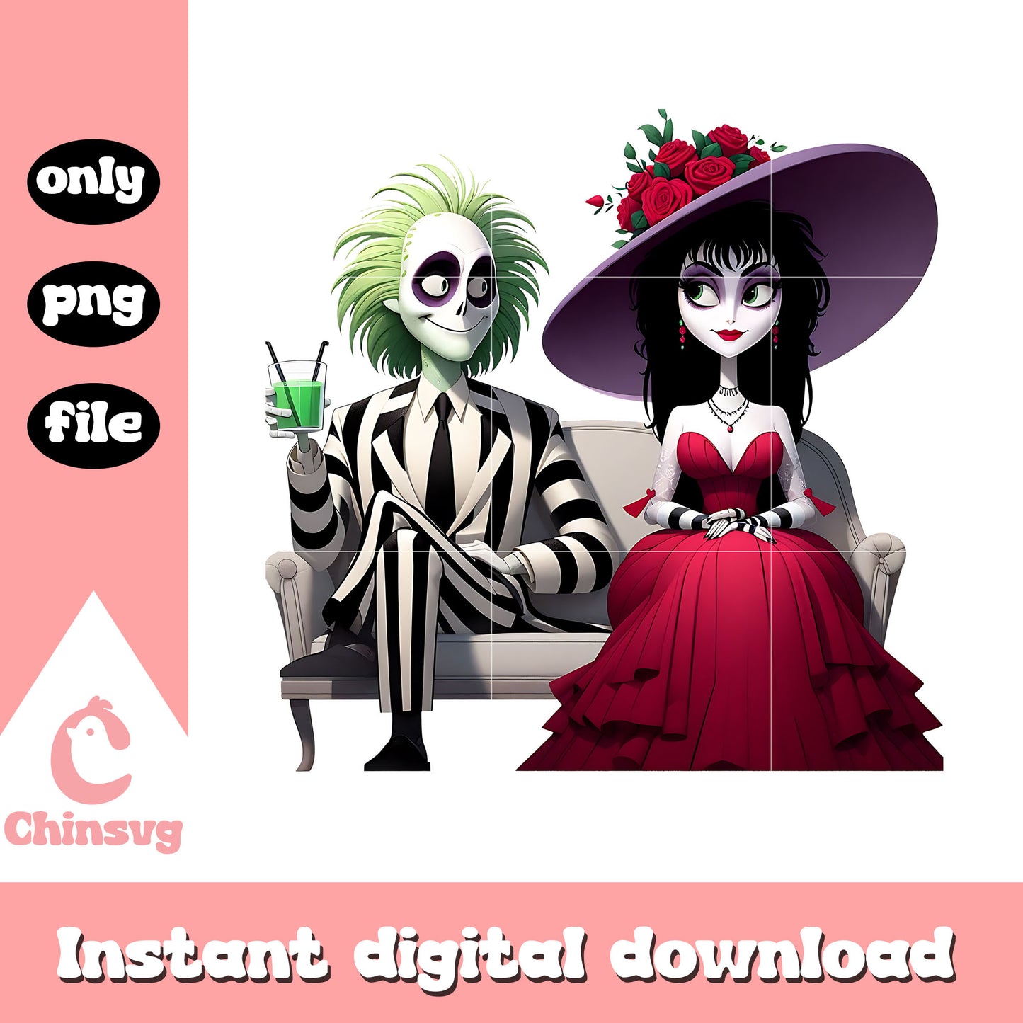 Beetlejuice lydia cute couple png is a product of our Halloween collection. Whether you're crafting spooky decorations, designing party invitations, or creating unique apparel, this collection is packed with high-quality, detailed graphics that perfectly capture the spirit of Halloween. From pumpkins, ghosts, bats, to witches, skeletons, and more, this set offers endless possibilities for your creative ideas.