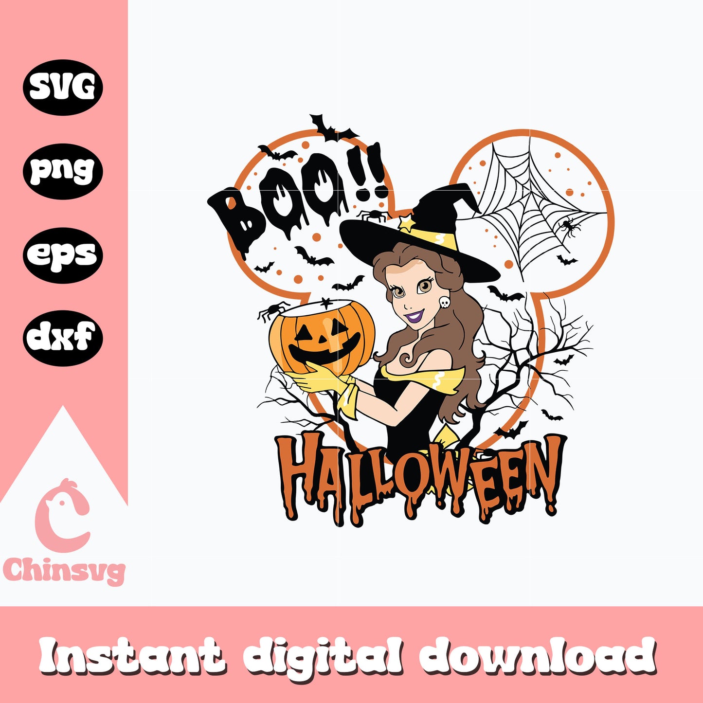 Belle princess Boo Halloween svg, Mickey head halloween svg this is a digital download file. It's not a physical commodity. Those are digital files you can use for t-shirts, scrapbooks, wall vinyls, stickers, Perfect for T-shirts, iron-ons, mugs, printables, card making, scrapbooking, etc.