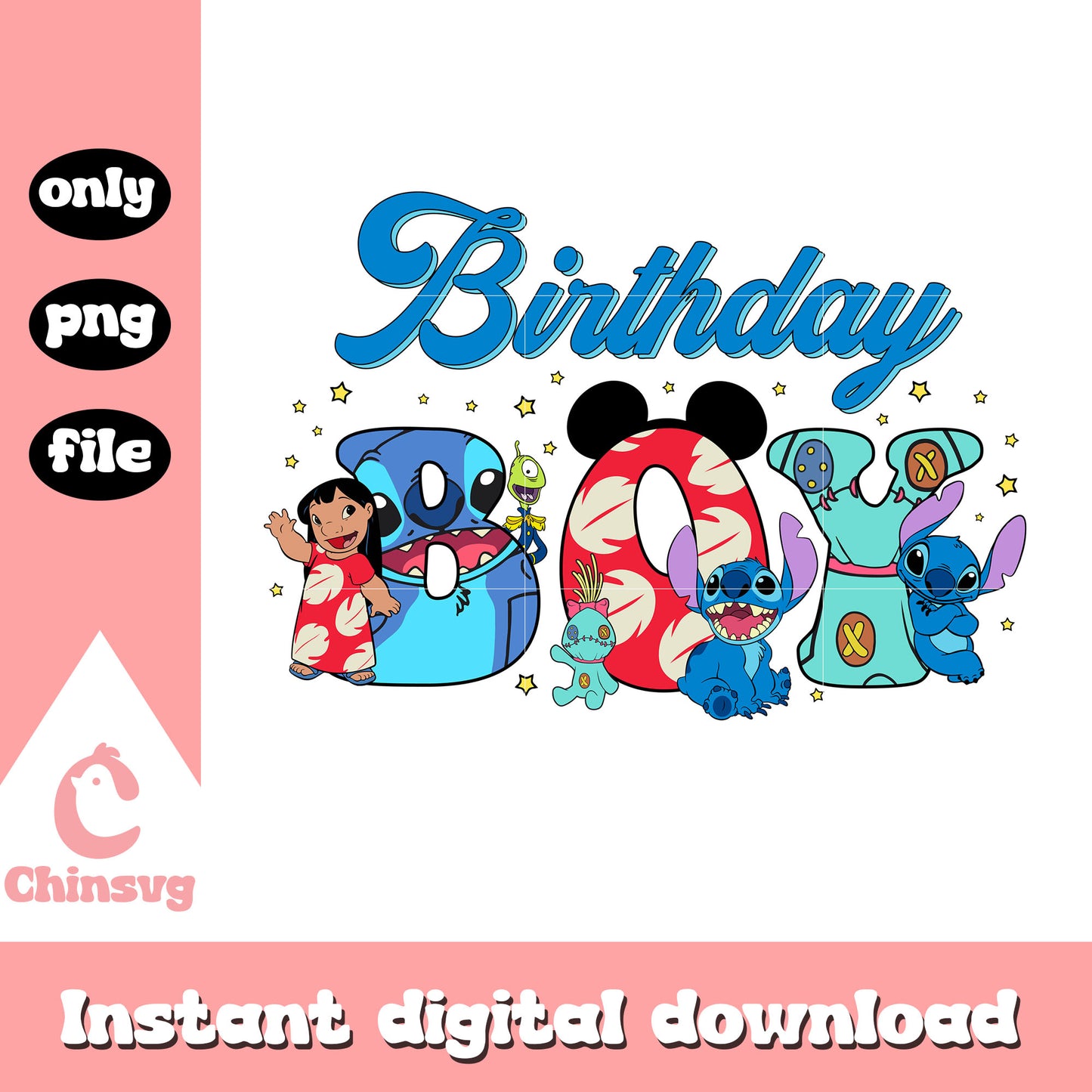 Birthday boy stitch and friends png is a product of our Disney collection. Perfect for Disney fans of all ages, this collection captures the charm and nostalgia of your favorite characters and magical worlds. Featuring a range of beloved characters, castles, magical icons, and whimsical designs, these files are ideal for creating everything from custom apparel to party decorations and personalized gifts.