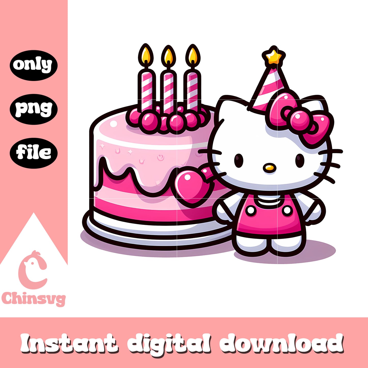 Birthday cake and kitty cat png, sanrio png, birthday png