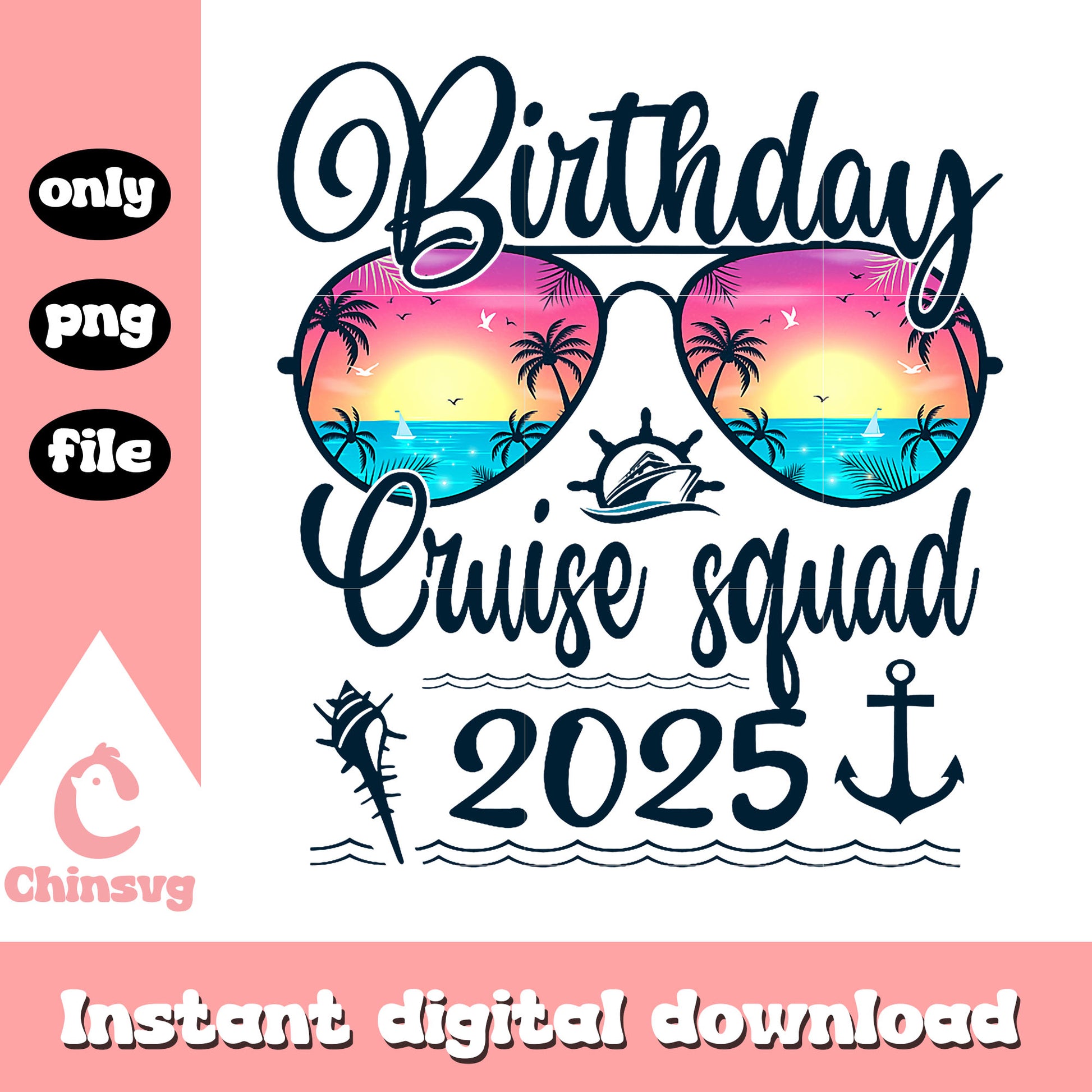 Birthday cruise squad 2025 png, cruise trip png, birthay png