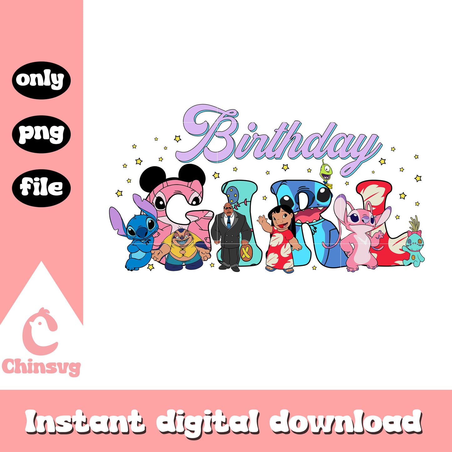 Birthday girl stitch and friends png is a product of our Disney collection. Perfect for Disney fans of all ages, this collection captures the charm and nostalgia of your favorite characters and magical worlds. Featuring a range of beloved characters, castles, magical icons, and whimsical designs, these files are ideal for creating everything from custom apparel to party decorations and personalized gifts.