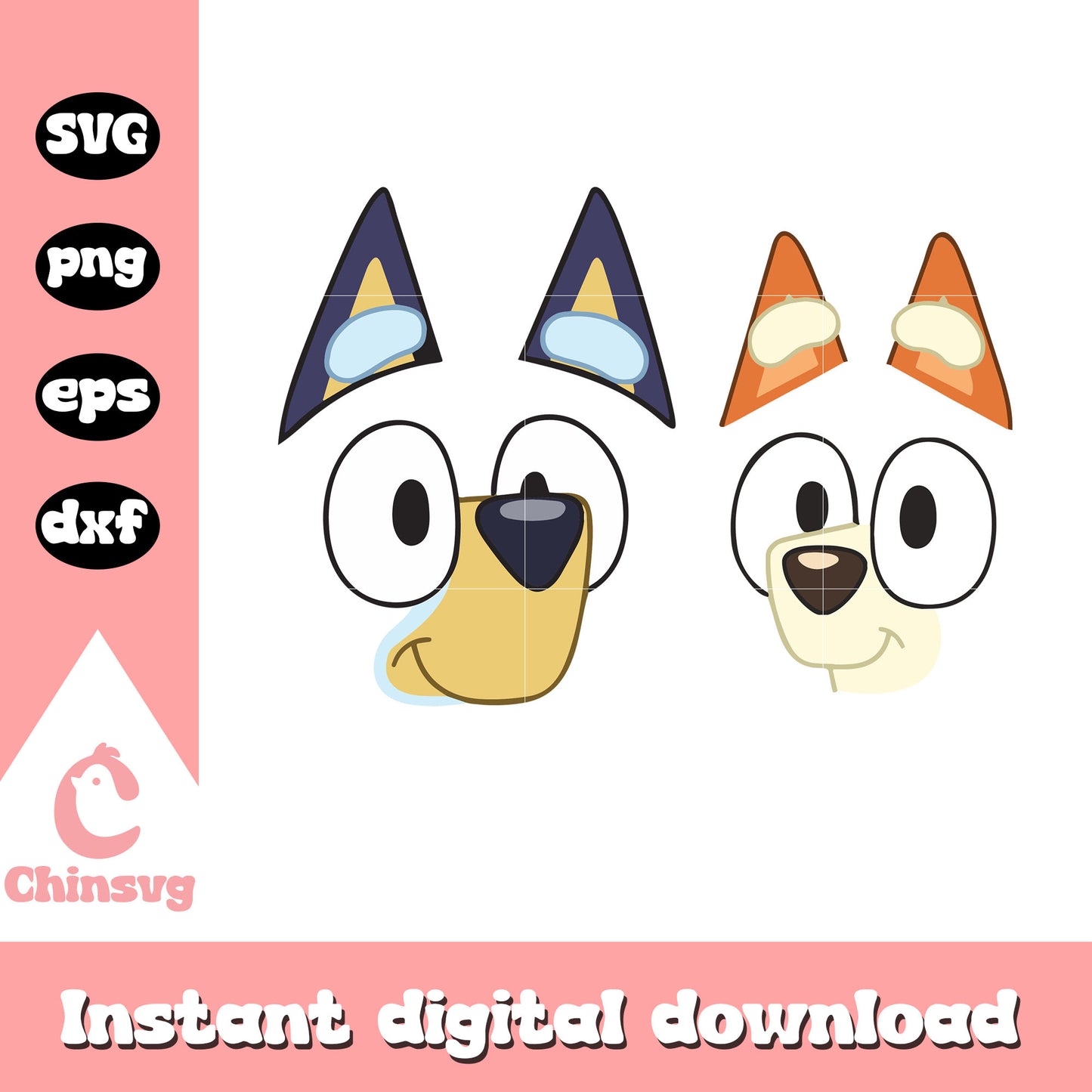Bluey and bingo character face svg, bluey svg, cartoon svg