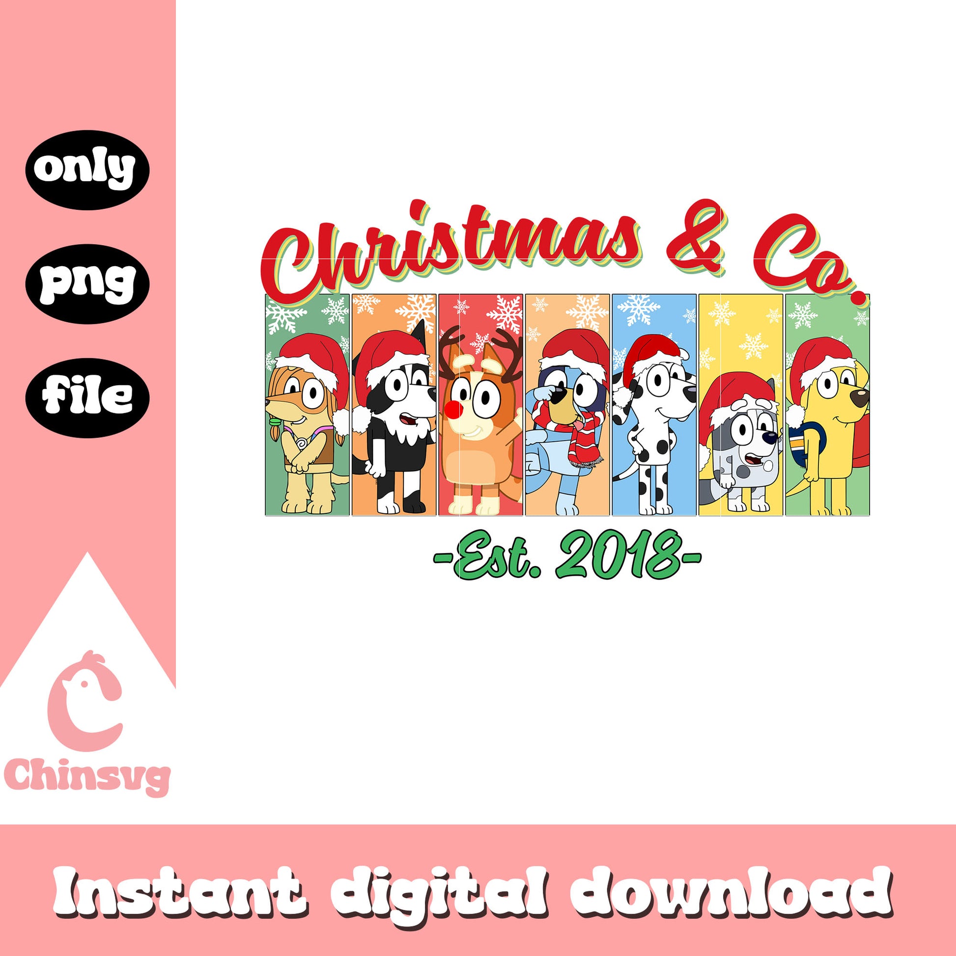 Bluey and co est 2018 characters christmas png is a product of our christmas collection. Perfect for DIY enthusiasts, crafters, and designers, this collection offers a wide range of festive elements like Christmas trees, Santa Claus, snowflakes, ornaments, reindeer, and more. Whether you’re designing greeting cards, personalized gifts, or home decor, these high-quality designs will help you create something truly special this Christmas.