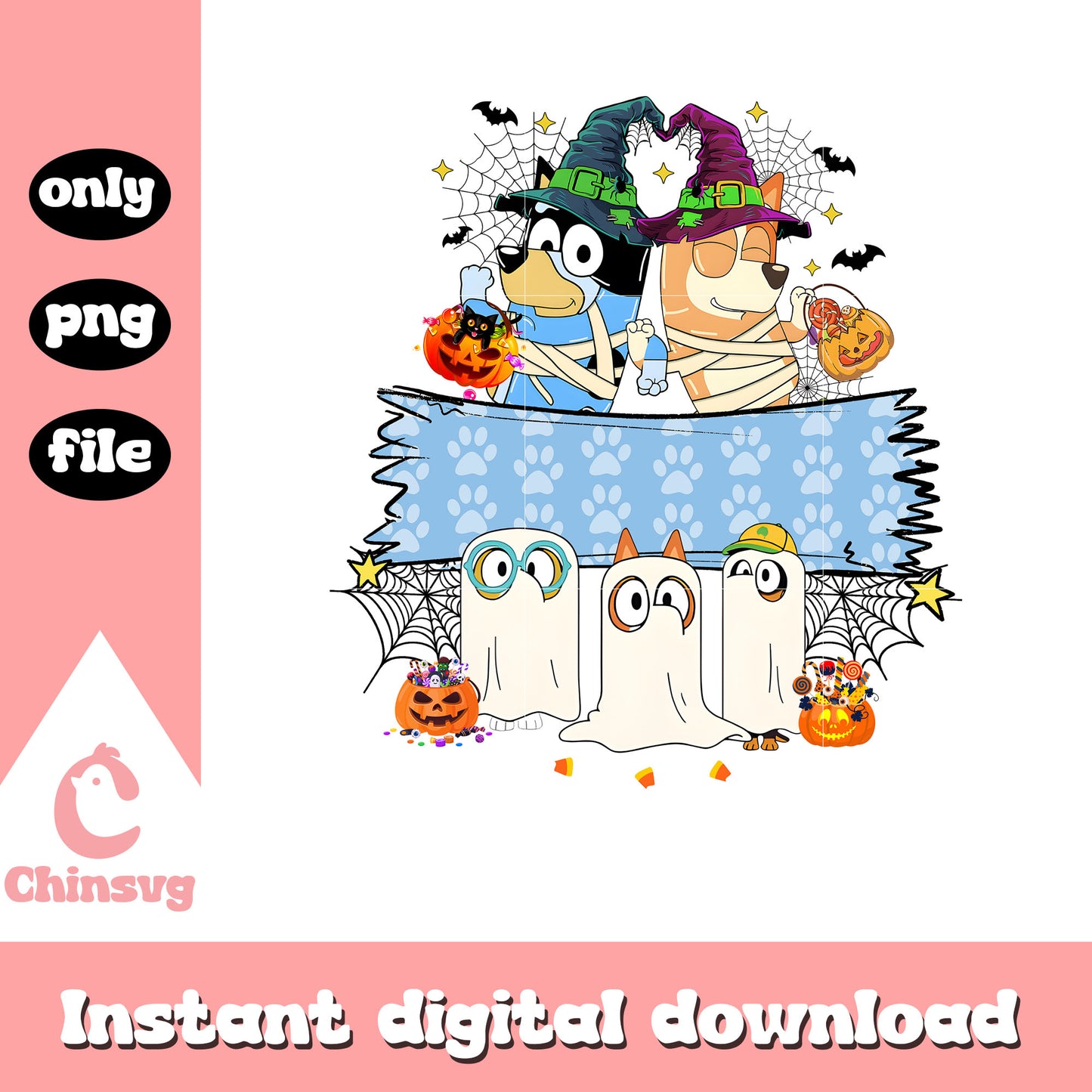 Bluey bingo mummy halloween design png is a product of our Bluey collection. Packed with vibrant, fun, and creative illustrations, this collection features a wide range of adorable characters, colorful icons, and lively scenes that will brighten up any project. Whether you’re designing for kids' parties, custom apparel, or digital art, these high-quality files are perfect for unleashing your creativity.