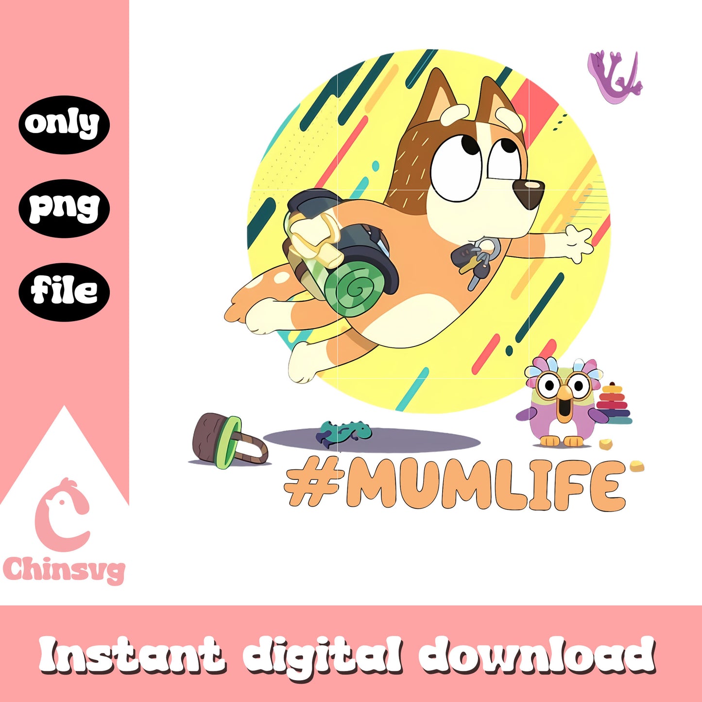 Bluey cartoon mum life design png is a product of our Bluey collection. Packed with vibrant, fun, and creative illustrations, this collection features a wide range of adorable characters, colorful icons, and lively scenes that will brighten up any project. Whether you’re designing for kids' parties, custom apparel, or digital art, these high-quality files are perfect for unleashing your creativity.