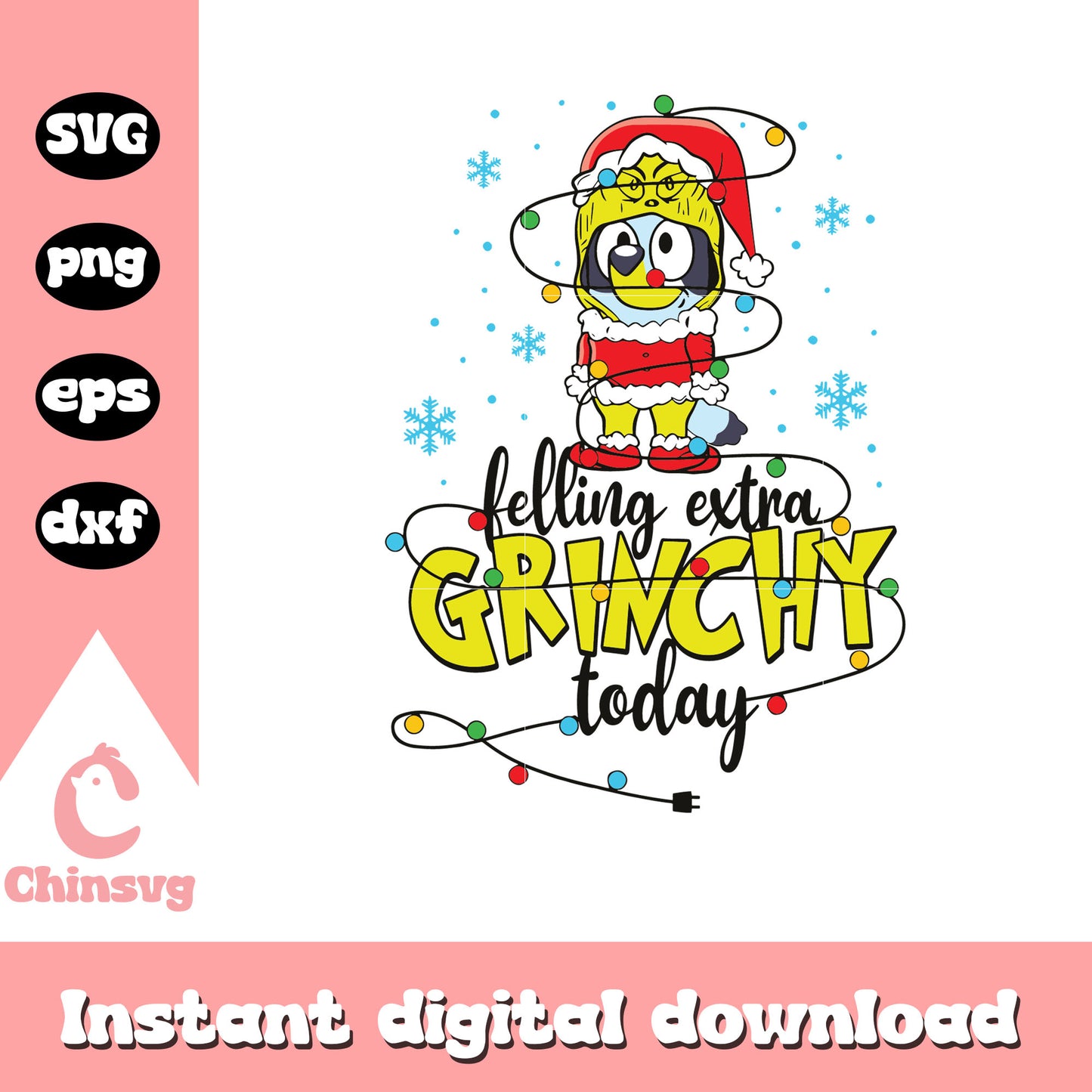 Bluey felling extra grinchy today yellow svg, bluey grinch svg