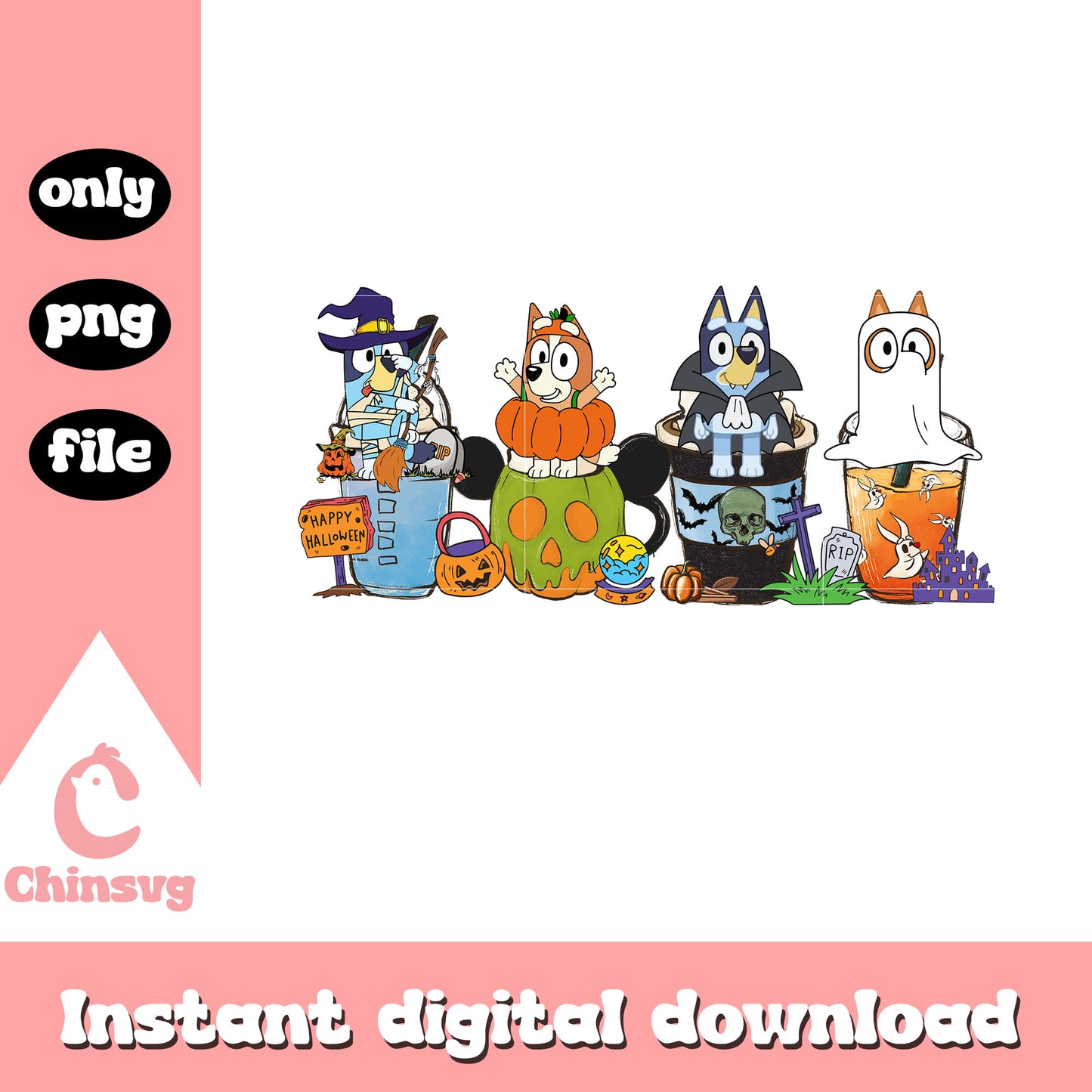 Bluey friends cup halloween design png is a product of our Bluey collection. Packed with vibrant, fun, and creative illustrations, this collection features a wide range of adorable characters, colorful icons, and lively scenes that will brighten up any project. Whether you’re designing for kids' parties, custom apparel, or digital art, these high-quality files are perfect for unleashing your creativity.