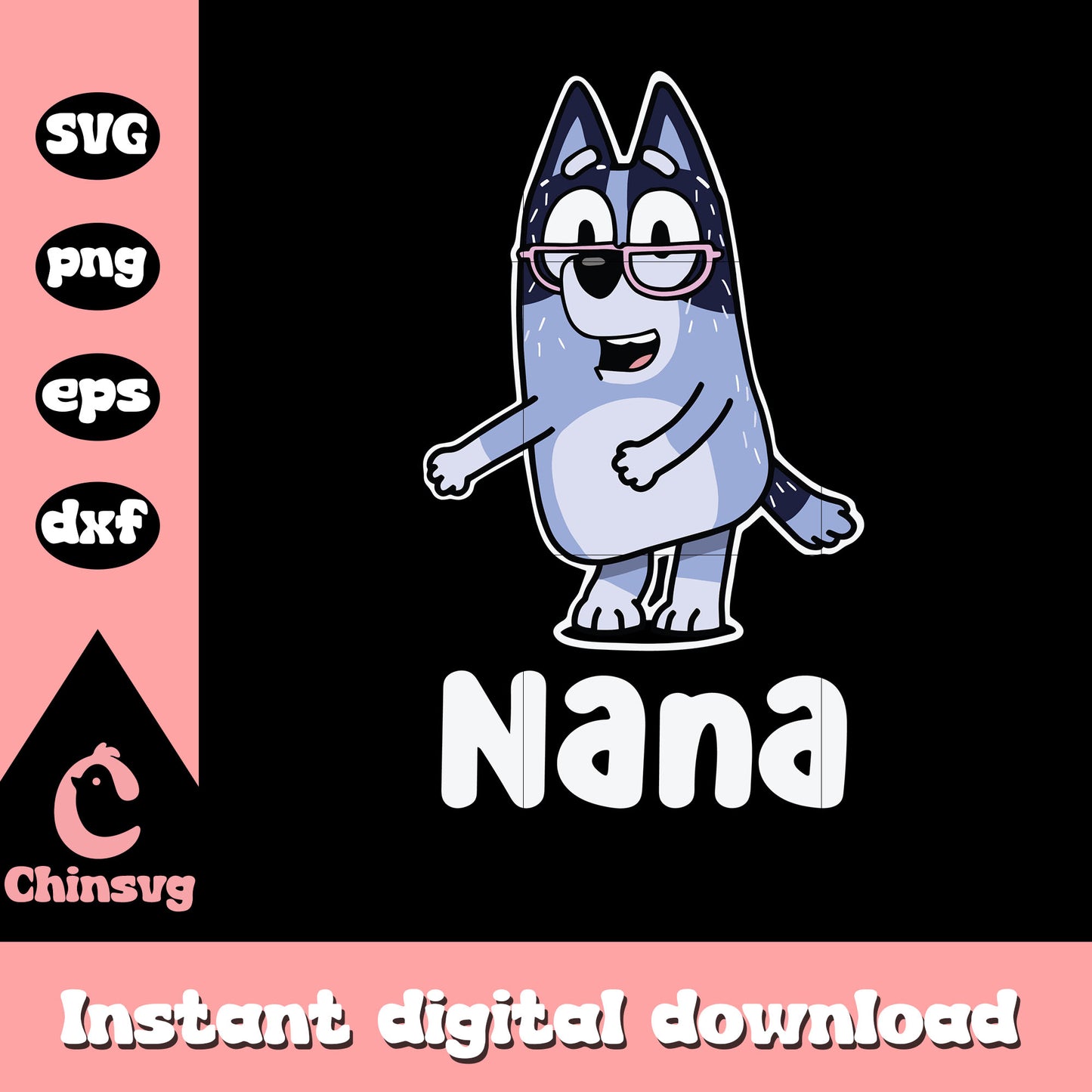 Bluey grandma Nana svg is a product of our Bluey collection. Packed with vibrant, fun, and creative illustrations, this collection features a wide range of adorable characters, colorful icons, and lively scenes that will brighten up any project. Whether you’re designing for kids' parties, custom apparel, or digital art, these high-quality files are perfect for unleashing your creativity.
