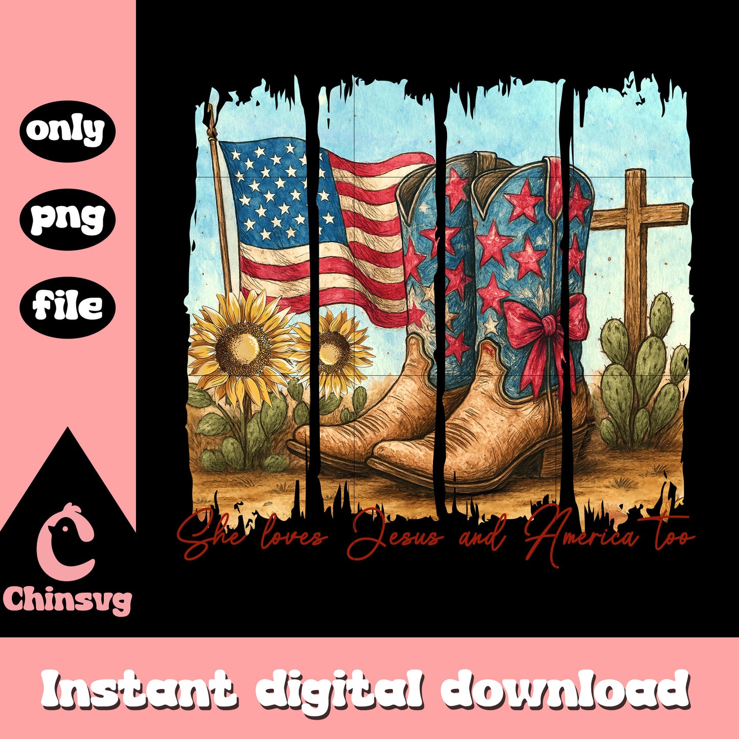 Boots flag and sunflower png, she love jesus boots flag sunflower png