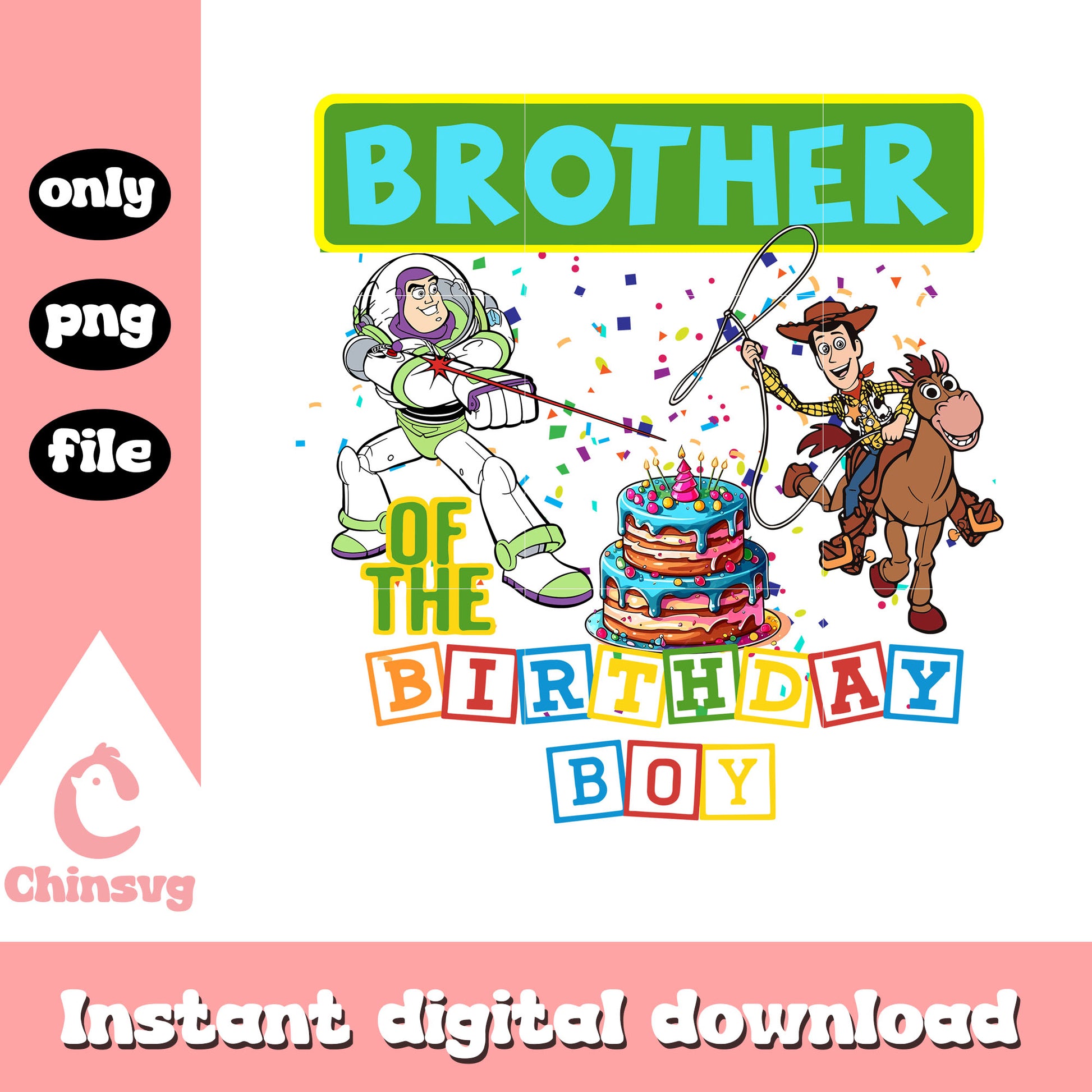 Brother of the birthday boy png is a product of our Disney collection. Perfect for Disney fans of all ages, this collection captures the charm and nostalgia of your favorite characters and magical worlds. Featuring a range of beloved characters, castles, magical icons, and whimsical designs, these files are ideal for creating everything from custom apparel to party decorations and personalized gifts.