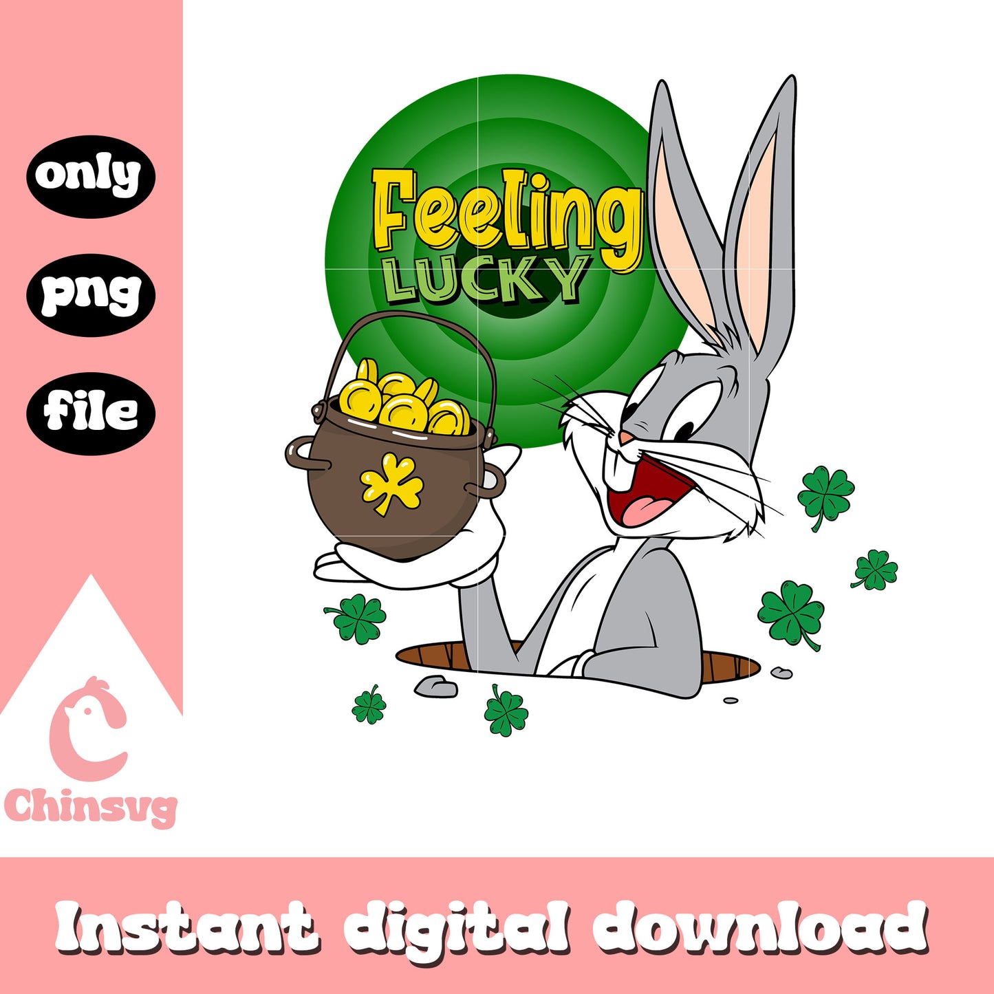 Bugs feeling lucky png is a product of our St patrick's day collection. Packed with festive designs, this collection features lucky clovers, leprechauns, rainbows, hats, mugs of beer, and all things green and gold. Perfect for crafting custom decorations, apparel, and gifts, these high-quality files are ideal for adding a touch of Irish cheer to your creative projects.