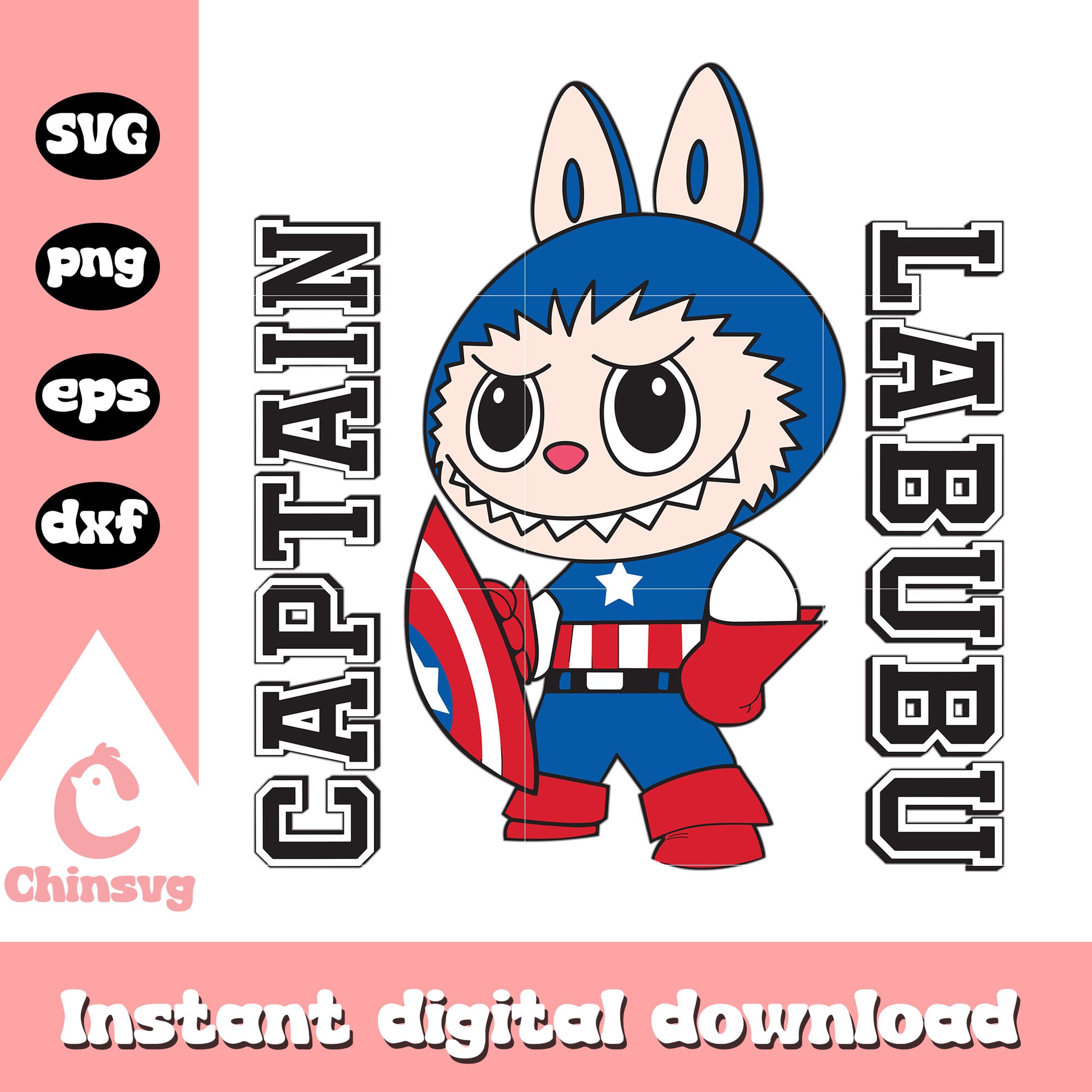 Captain labubu cute doll drawing design svg, captain marvel svg