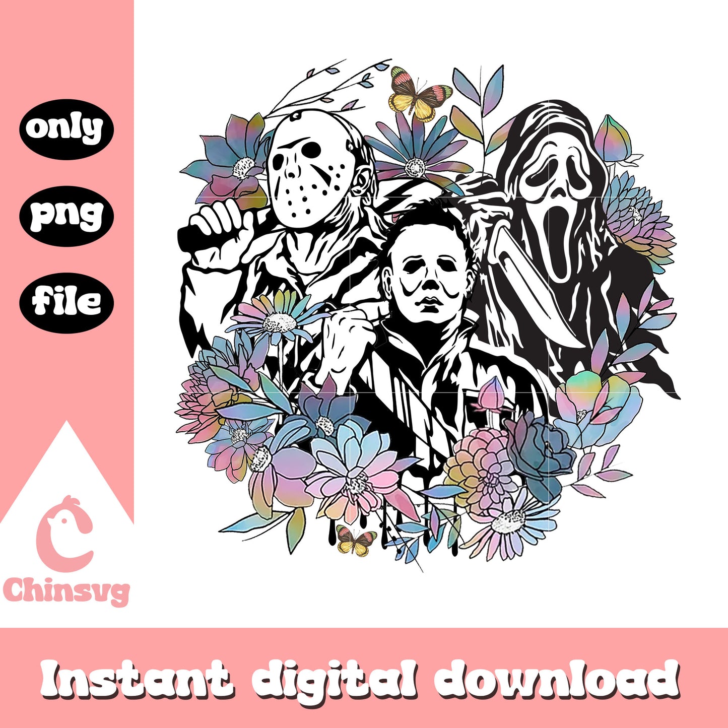 Characters floral halloween design png is a product of our Halloween collection. Whether you're crafting spooky decorations, designing party invitations, or creating unique apparel, this collection is packed with high-quality, detailed graphics that perfectly capture the spirit of Halloween. From pumpkins, ghosts, bats, to witches, skeletons, and more, this set offers endless possibilities for your creative ideas.
