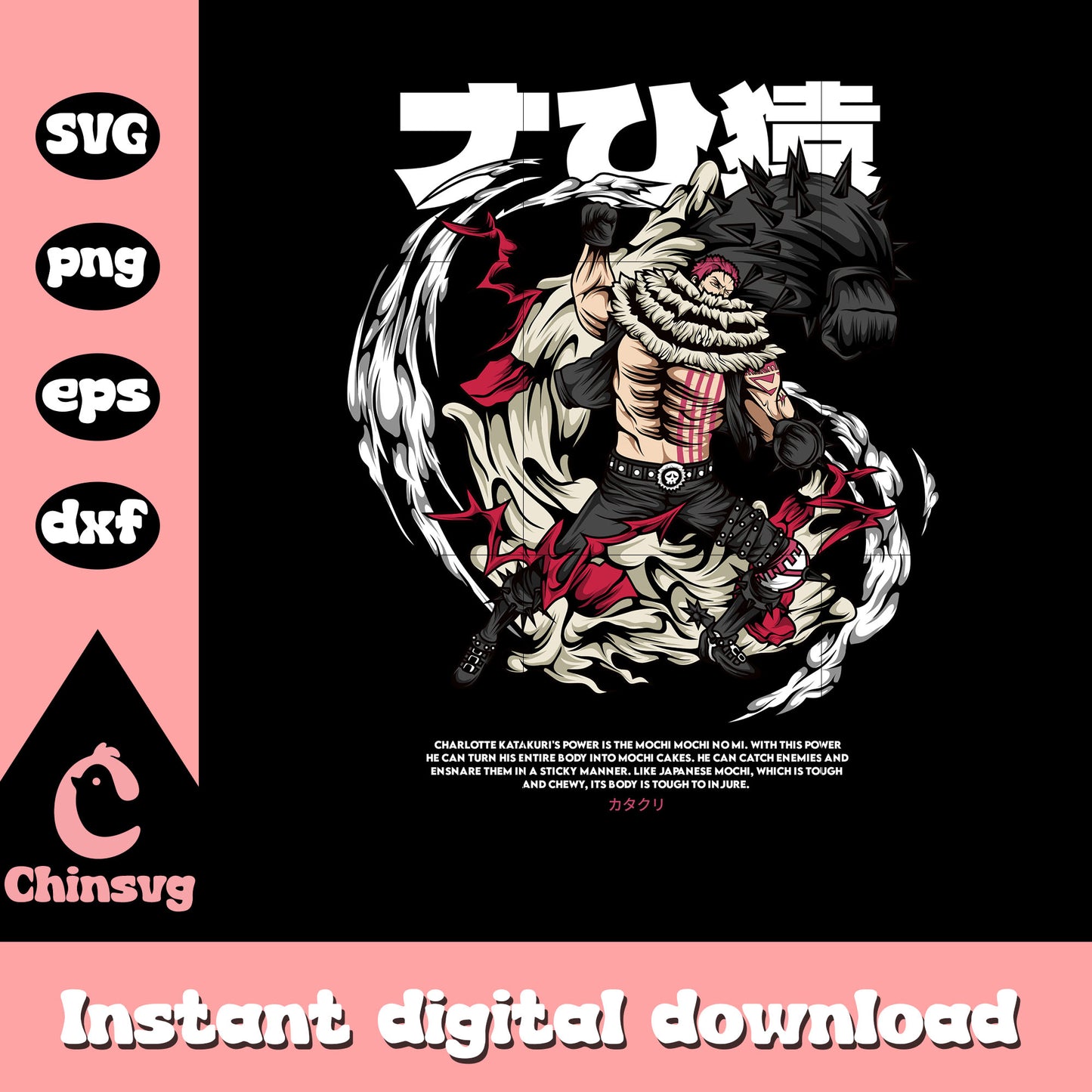 Charlotte Katakuri png is a product of our one piece collection. Featuring iconic characters, pirate symbols, legendary quotes, and famous emblems, this collection is perfect for anime fans, cosplayers, and creative crafters. Whether you're designing custom apparel, home decor, or gifts for fellow One Piece lovers, these high-quality SVG designs will bring the spirit of adventure to your creations!