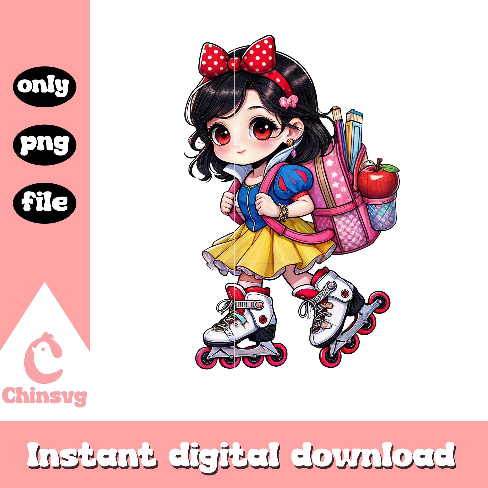 Chibi snow white roller skating to school design png is a product of our School collection. Celebrate the spirit of learning with our School SVG Collection! Perfect for teachers, students, and parents, this collection features education-themed designs, from playful quotes and school supplies to classroom graphics and seasonal school moments. Whether you're personalizing a teacher gift or decorating for back-to-school, these high-quality files bring creativity to every classroom and craft project!