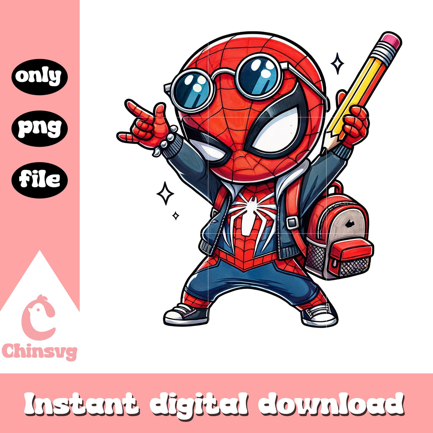 Chibi spiderman posing back to school design png is a product of our School collection. Celebrate the spirit of learning with our School SVG Collection! Perfect for teachers, students, and parents, this collection features education-themed designs, from playful quotes and school supplies to classroom graphics and seasonal school moments. Whether you're personalizing a teacher gift or decorating for back-to-school, these high-quality files bring creativity to every classroom and craft project!