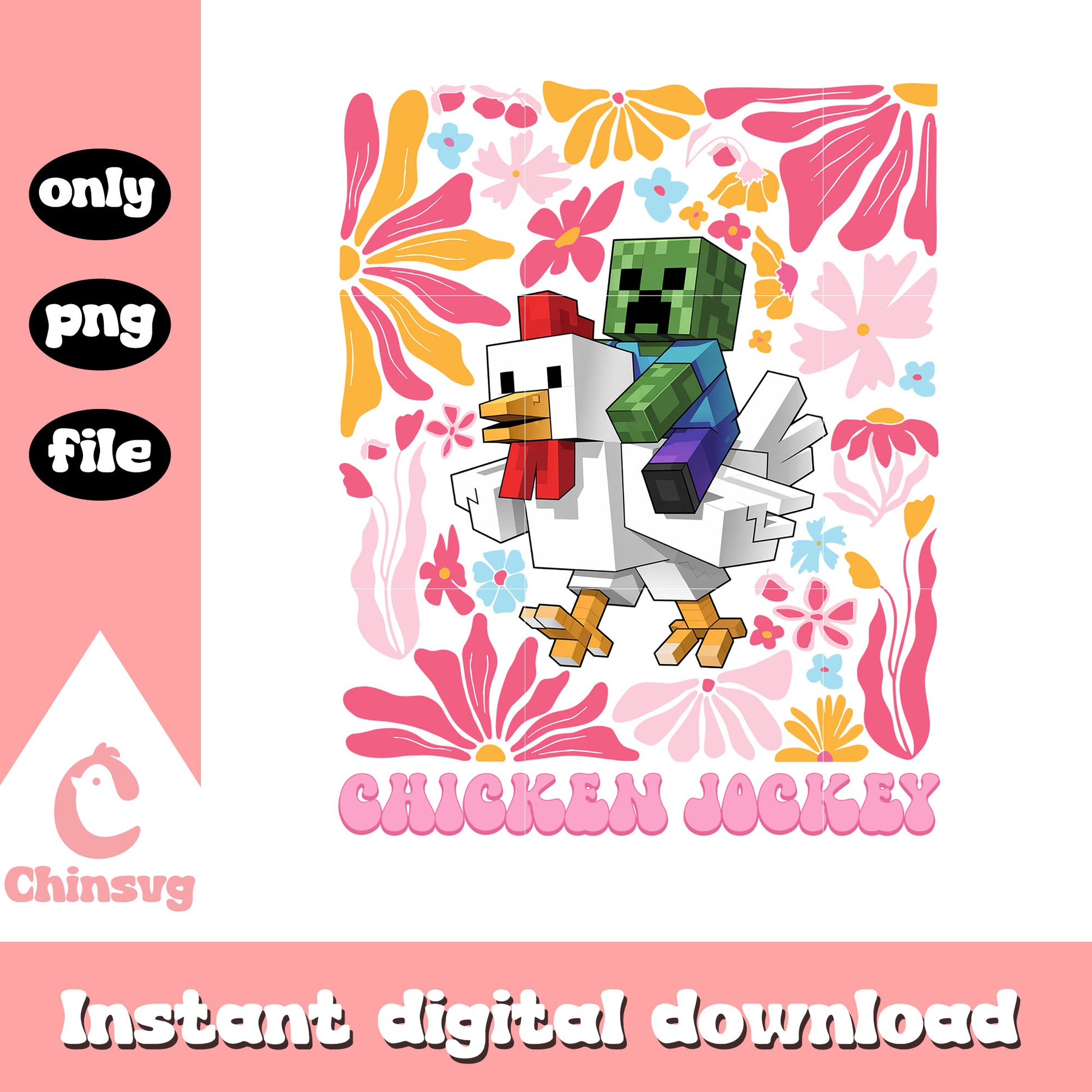 Chicken jockey flower design png, chicken jockey in minecraft png