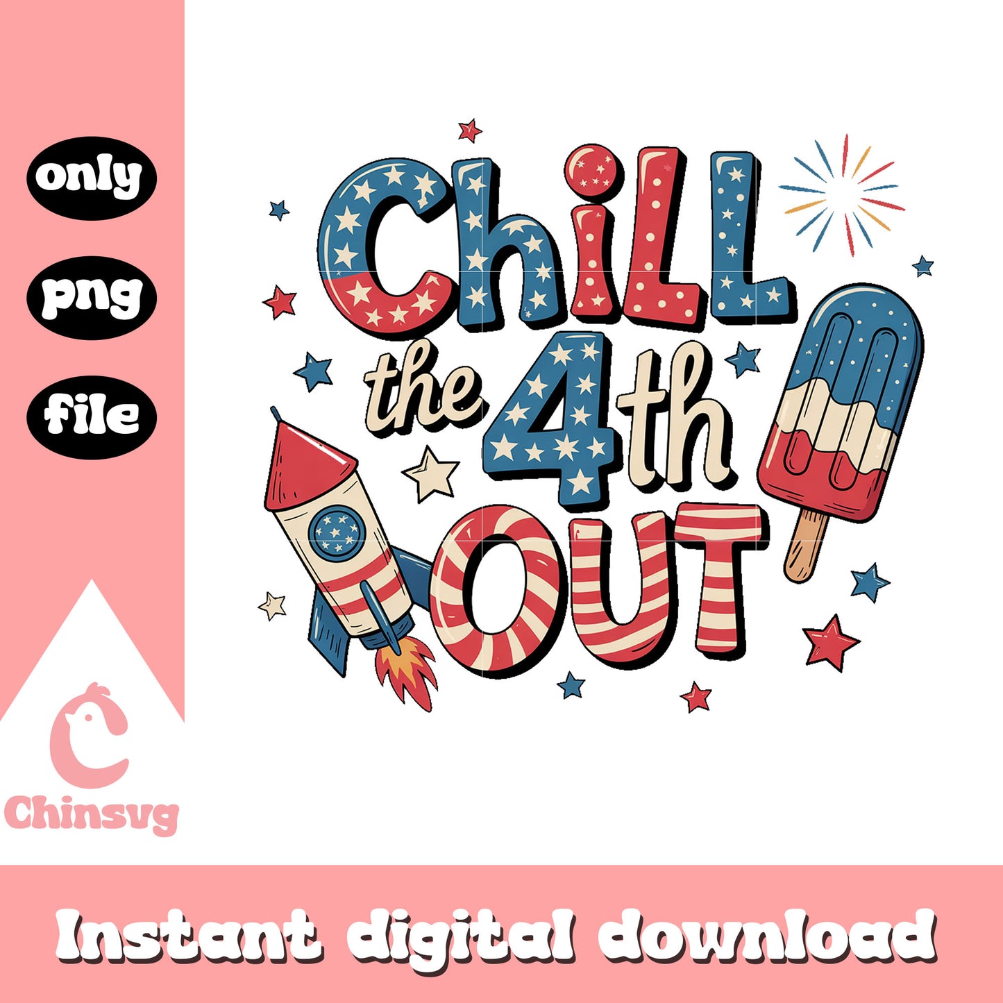 Chill the 4th out america png is a product of our 4th of July collection. Get ready to celebrate America’s Independence Day in style with our 4th of July SVG Collection! Packed with bold red, white, and blue designs, this collection features patriotic graphics, fun quotes, fireworks, flags, and more. Perfect for DIY apparel, party decorations, and personalized gifts that light up the holiday spirit!