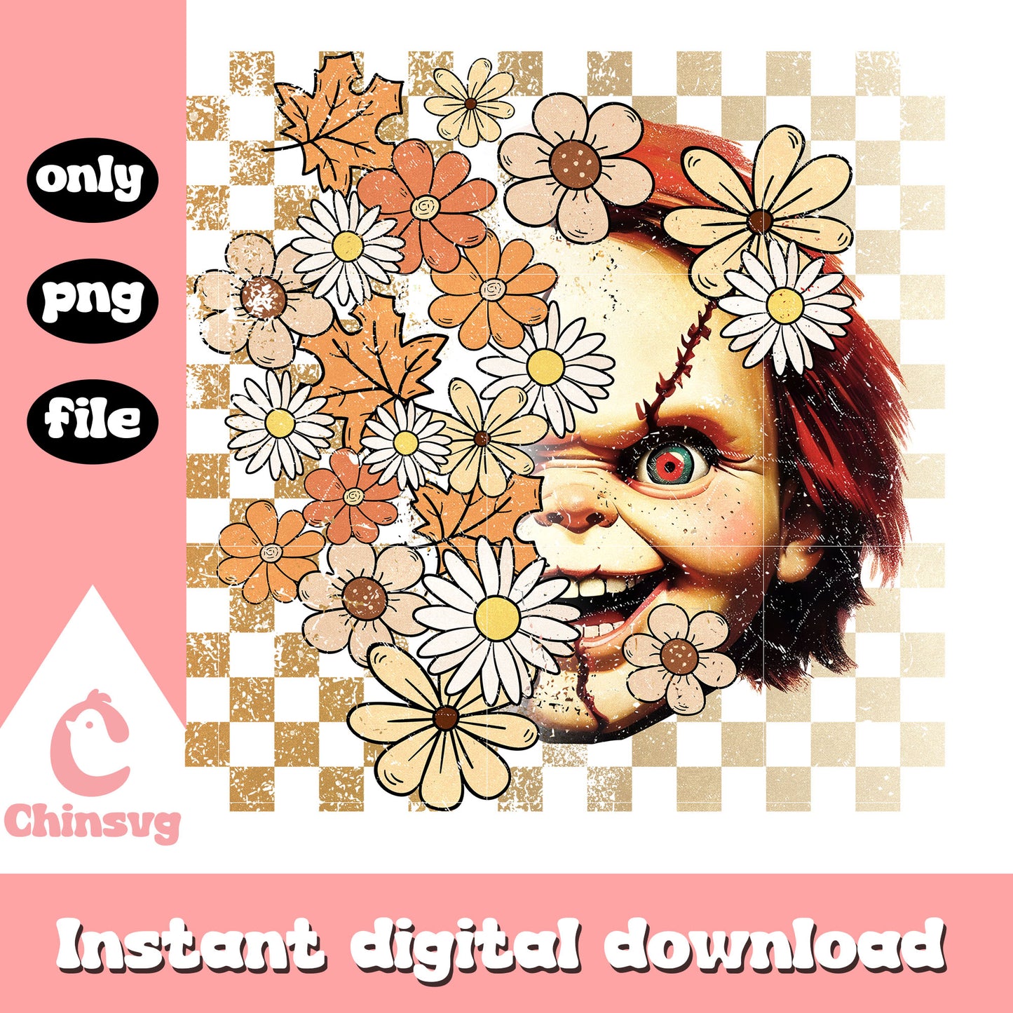 Chucky face floral design png is a product of our Halloween collection. Whether you're crafting spooky decorations, designing party invitations, or creating unique apparel, this collection is packed with high-quality, detailed graphics that perfectly capture the spirit of Halloween. From pumpkins, ghosts, bats, to witches, skeletons, and more, this set offers endless possibilities for your creative ideas.