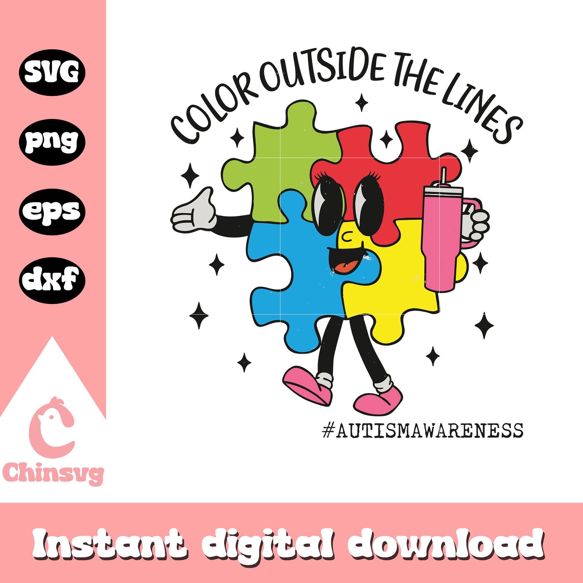 Color outside the lines puzzle piece svg, autism awareness svg
