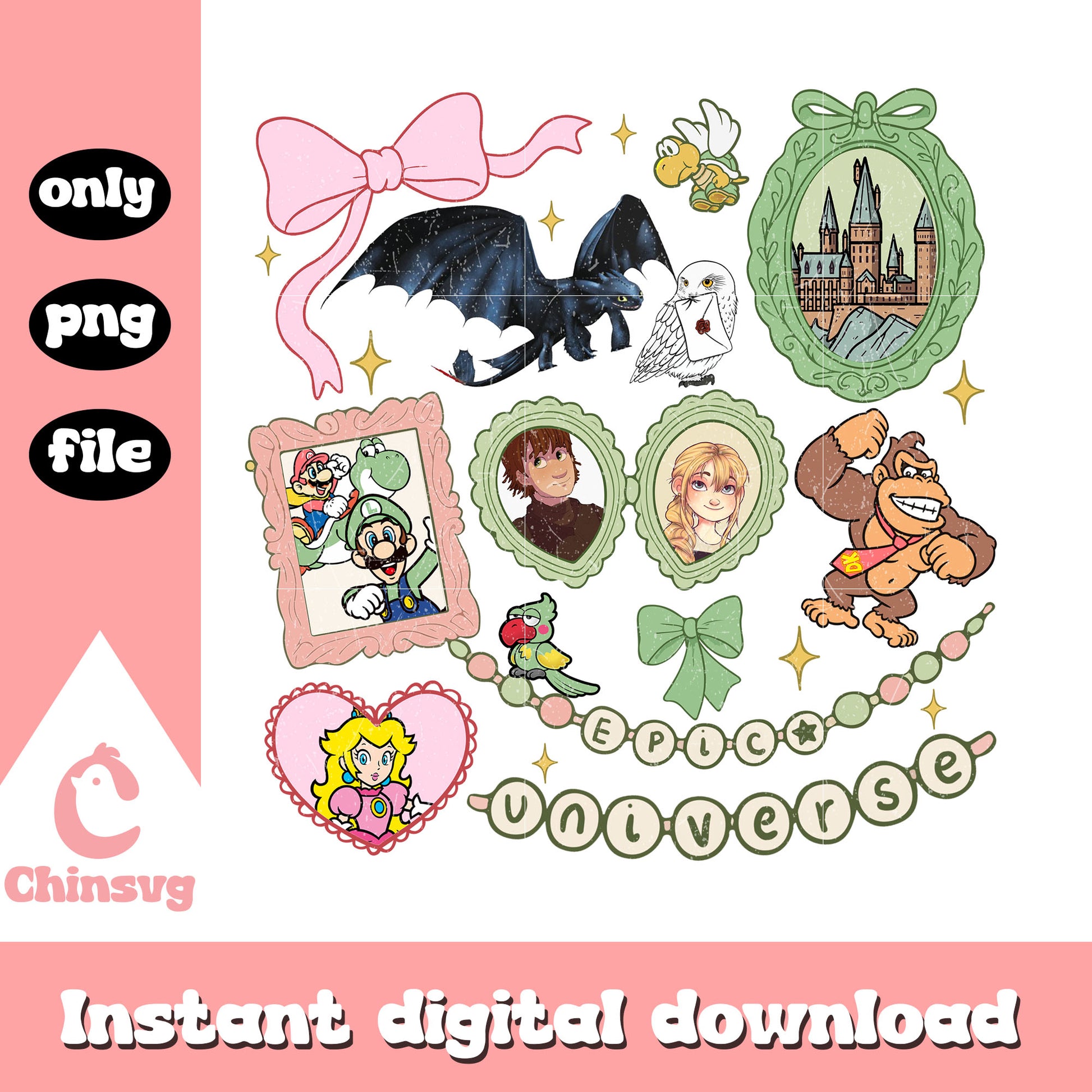 Coquette bow epic universe characters clipart png is a product of our Cartoon collection. Featuring iconic characters, playful designs, and vibrant elements, this collection is perfect for cartoon lovers of all ages. Whether you're crafting for kids, designing custom apparel, or creating unique home decor, these high-quality SVG files will add a touch of magic to your projects!