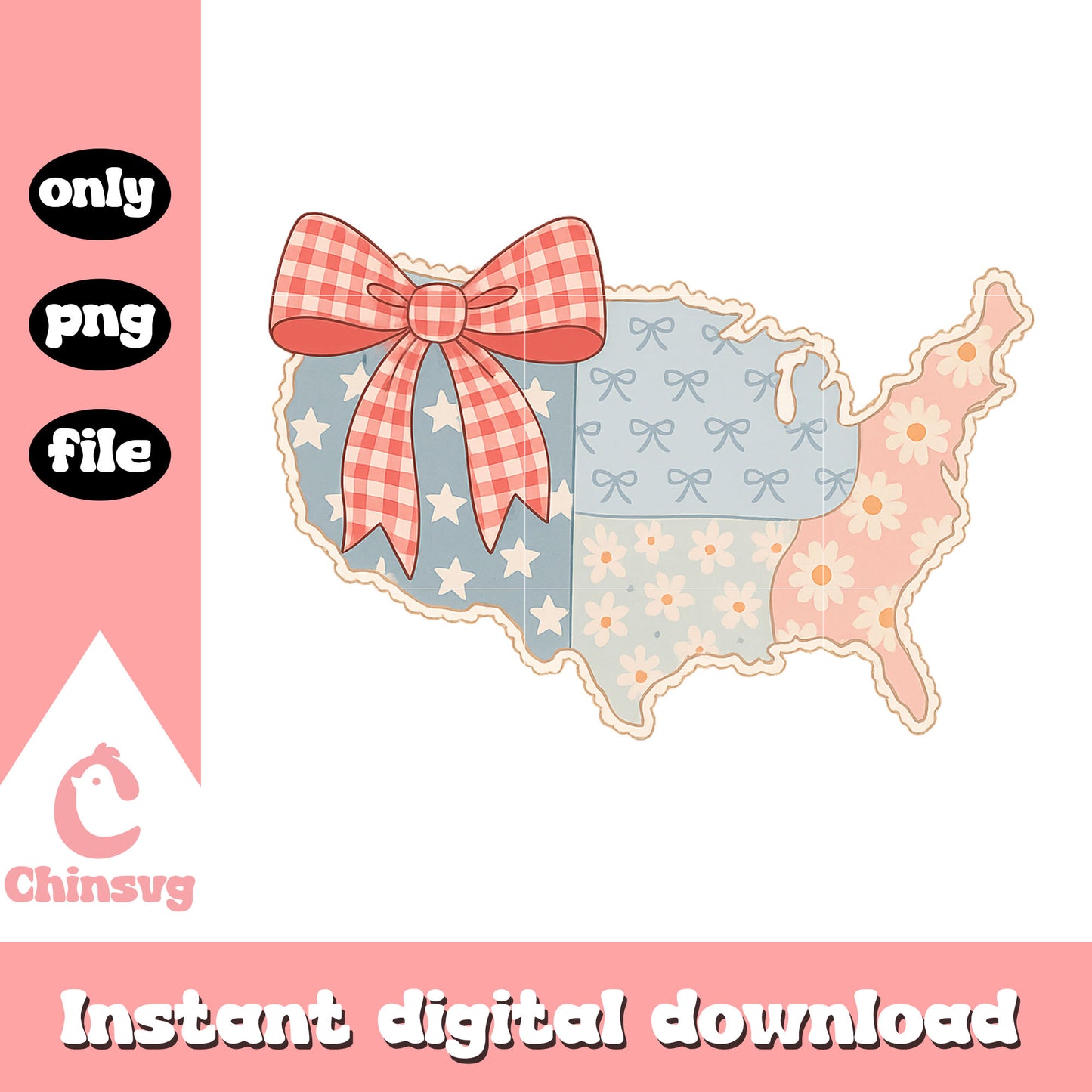 Cute bow america map design png is a product of our 4th of July collection. Get ready to celebrate America’s Independence Day in style with our 4th of July SVG Collection! Packed with bold red, white, and blue designs, this collection features patriotic graphics, fun quotes, fireworks, flags, and more. Perfect for DIY apparel, party decorations, and personalized gifts that light up the holiday spirit!