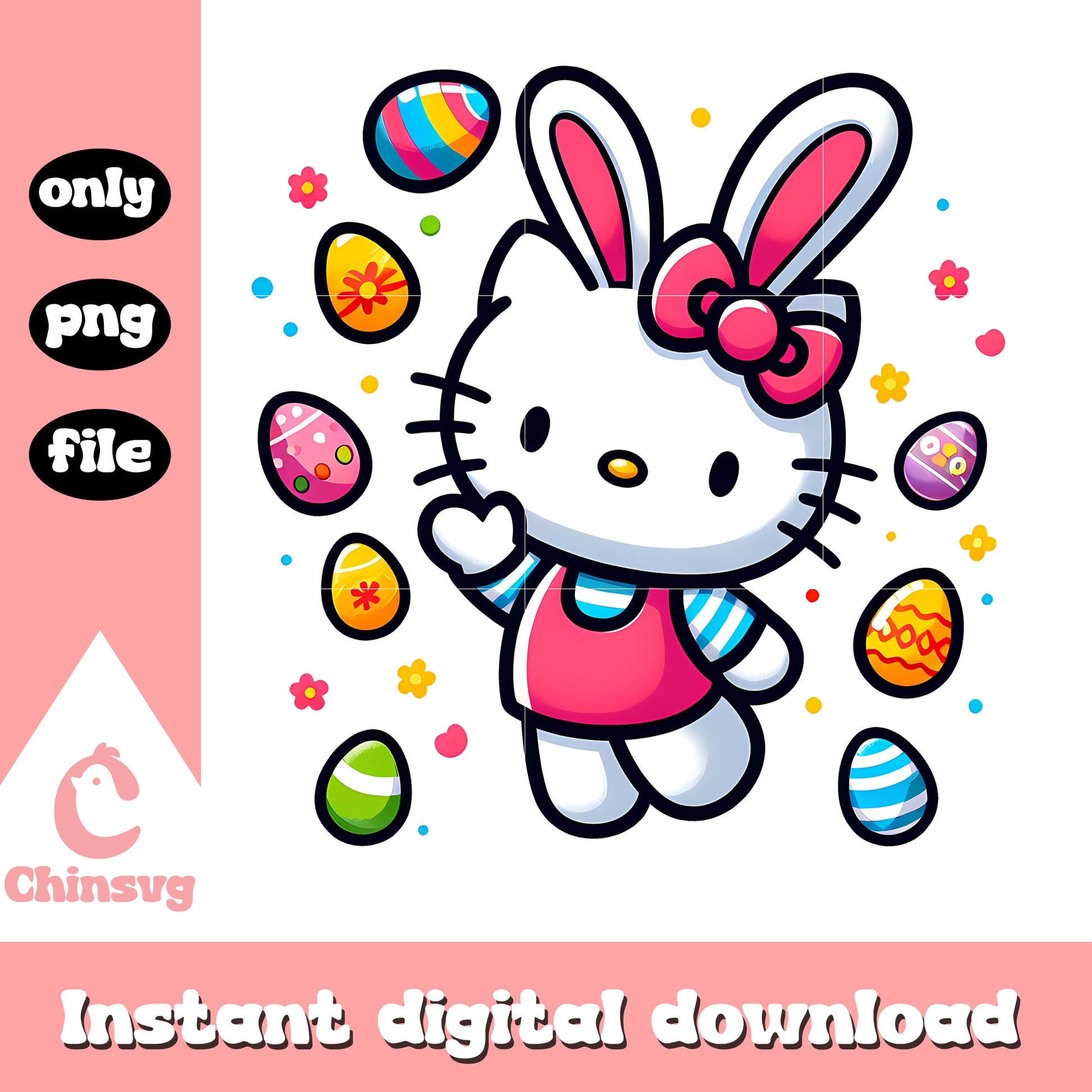 Cute kitty bunny easter eggs png, hello kitty png, easter eggs png