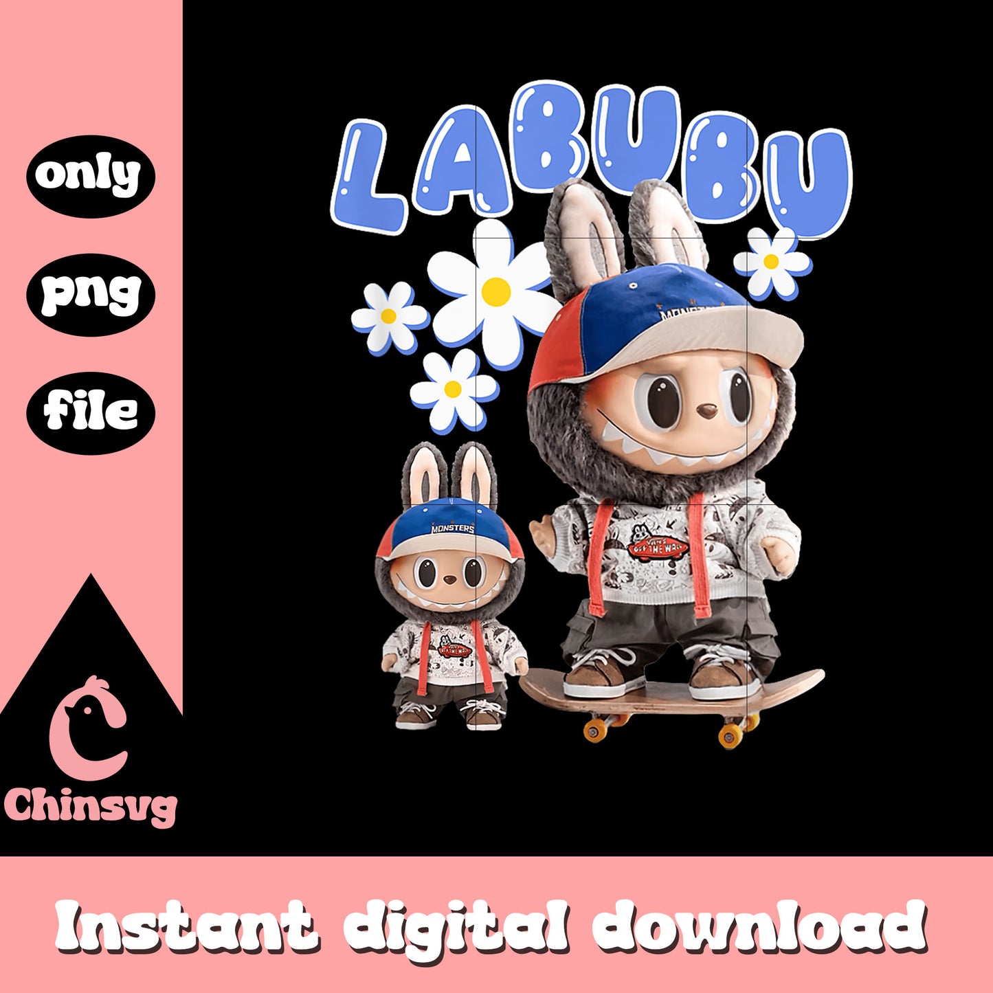 Cute labubu flower design png, labubu drawing png, labubu toy png