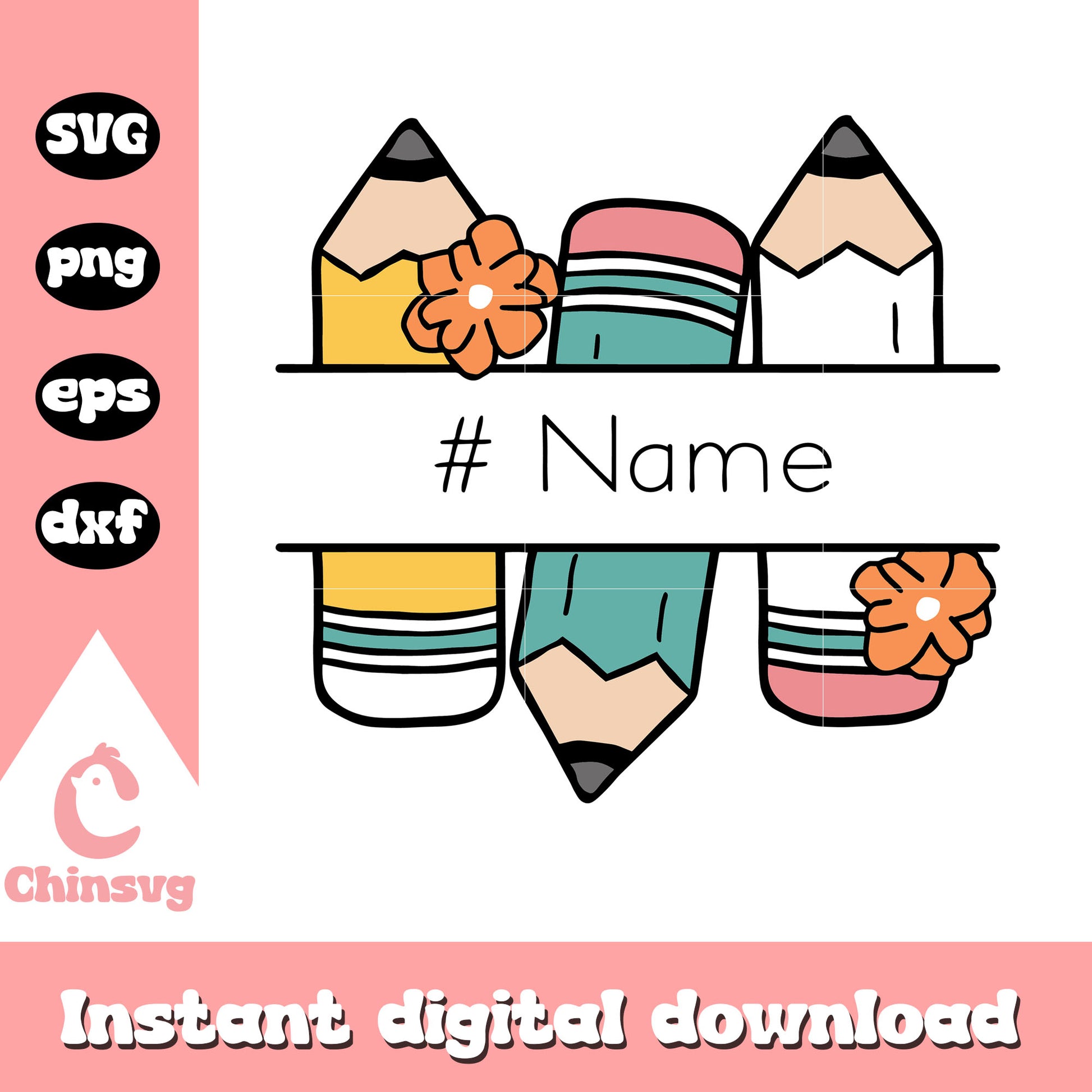 Cute pencil name back to school decor design svg is a product of our School collection. Celebrate the spirit of learning with our School SVG Collection! Perfect for teachers, students, and parents, this collection features education-themed designs, from playful quotes and school supplies to classroom graphics and seasonal school moments. Whether you're personalizing a teacher gift or decorating for back-to-school, these high-quality files bring creativity to every classroom and craft project!