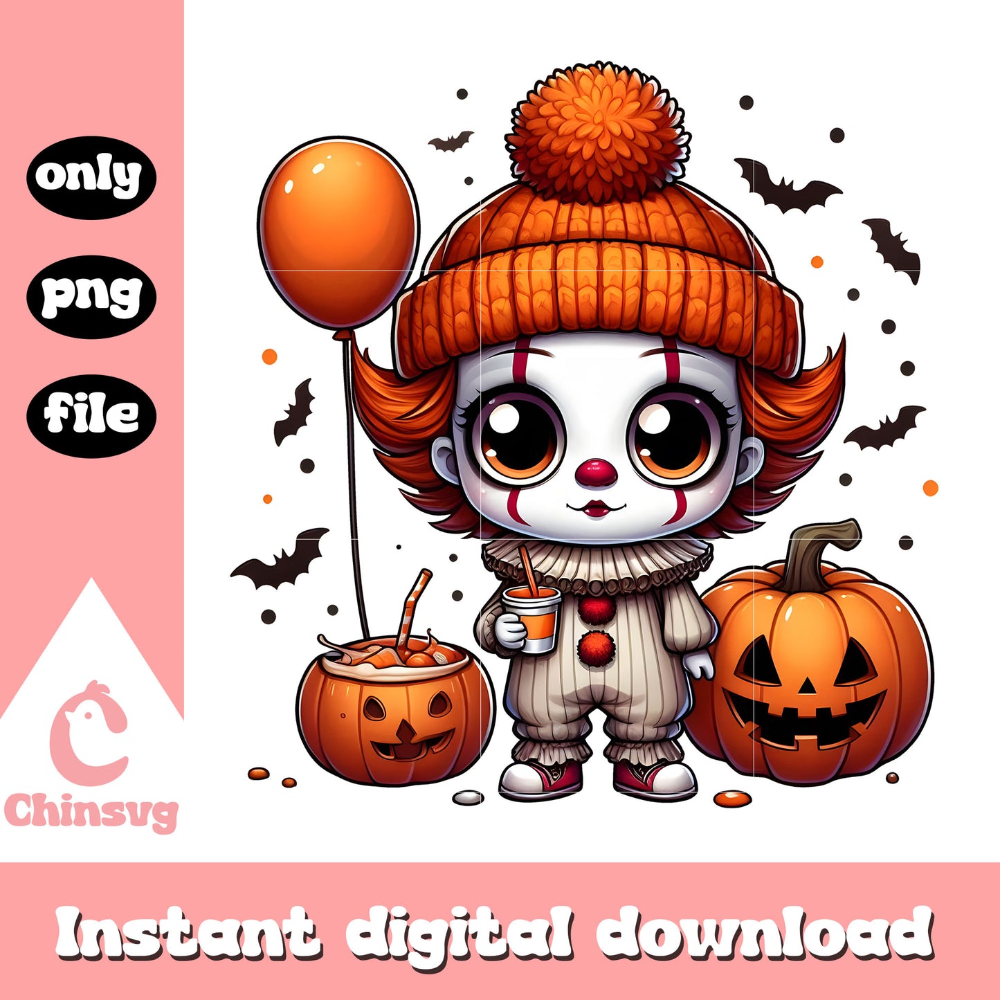 Cute pennywise pumpkin it fall png is a product of our Halloween collection. Whether you're crafting spooky decorations, designing party invitations, or creating unique apparel, this collection is packed with high-quality, detailed graphics that perfectly capture the spirit of Halloween. From pumpkins, ghosts, bats, to witches, skeletons, and more, this set offers endless possibilities for your creative ideas.