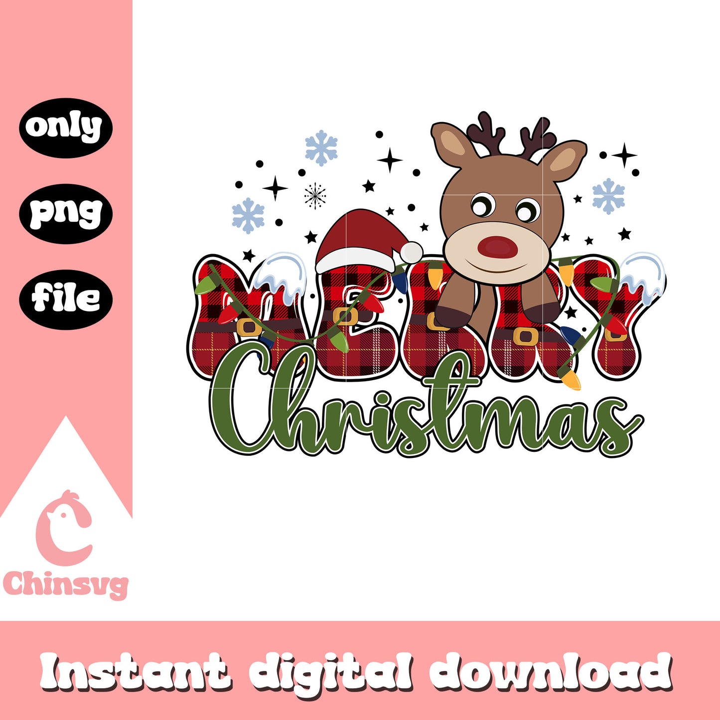 Cute reindeer merry christmas plaid png, reindeer christmas png