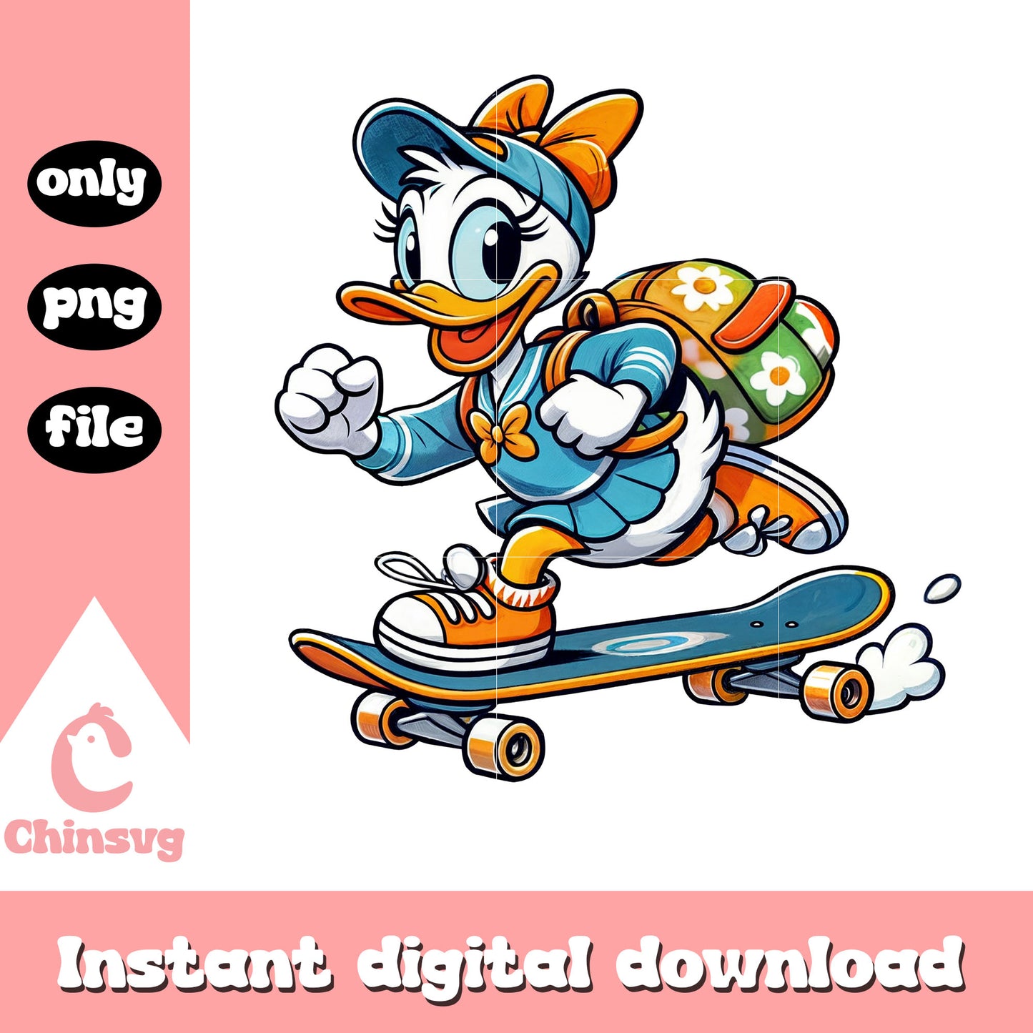 Daisy duck skateboarding to school design png is a product of our School collection. Celebrate the spirit of learning with our School SVG Collection! Perfect for teachers, students, and parents, this collection features education-themed designs, from playful quotes and school supplies to classroom graphics and seasonal school moments. Whether you're personalizing a teacher gift or decorating for back-to-school, these high-quality files bring creativity to every classroom and craft project!